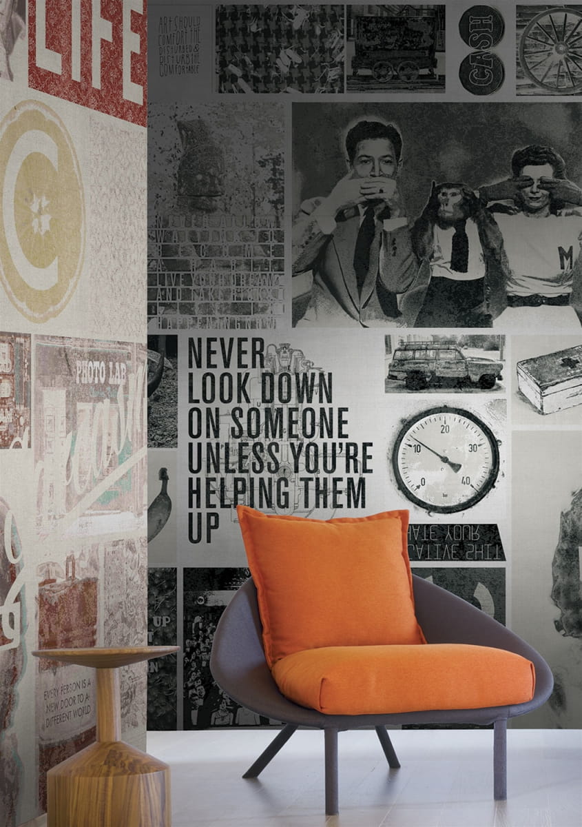 Mural London Art Exclusive 15/14 15152-03 C Factor to dekoracja ścienna, stworzona z kilku fotografii oraz grafik. Głównym celem projektu jest przekaz, który umieszczono w kompozycji. Nowoczesny wzór doskonale odnajdzie we wnętrzach art deco i vintage, w postaci ściany akcentowej. Mural London Art Exclusive 15/14 15152-03 C Factor dostępny jest w dwóch wersjach kolorystycznych.