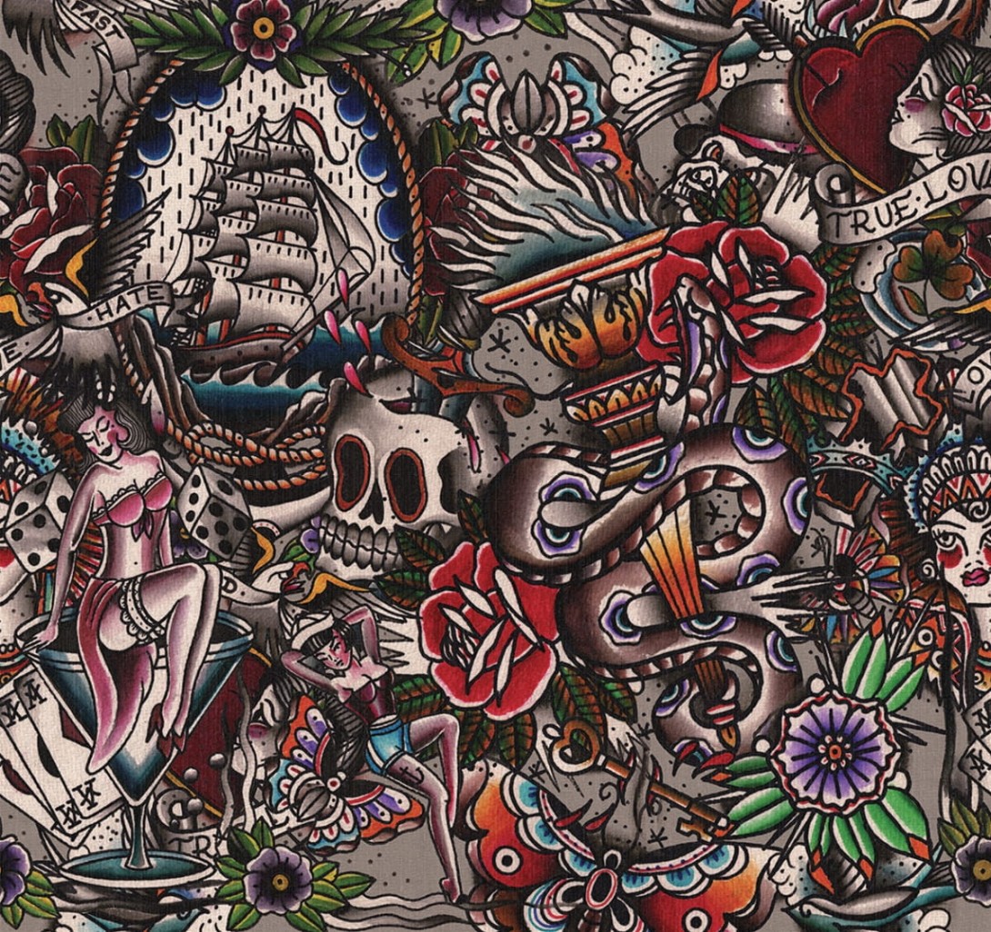 Mural London Art Exclusive 16 16049-02 True Love to oszałamiający i dość zaskakujący wzór mieszanki nietypowych kształtów jak statek, wąż, czaszka, kwiaty oraz twarz kobiety. Połączenie wszystkich elementów tworzy tajemniczy, wręcz szalony wystrój we wnętrzu, który przyciągnie zainteresowanie i wzbudzi podziw. Cała kompozycja zmieni swój charakter na wyrazisty i nietuzinkowy. Dzięki formie doskonale sprawdzi się w odważnych stylówzacjach nowoczesnego wnętrza. Mural London Art Exclusive 16 16049-02 True Love dostępny jest w czterech wariantach kolorystycznych.