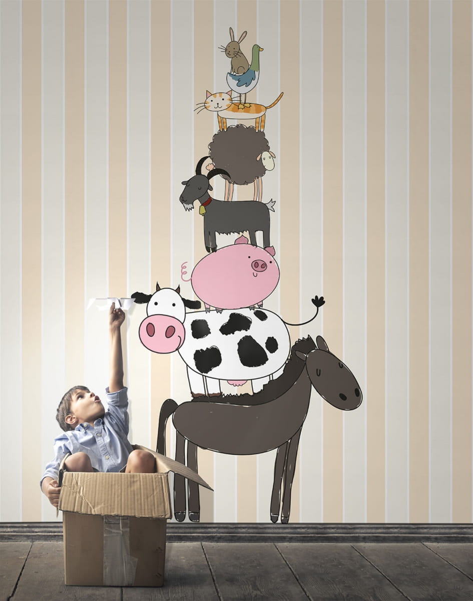 London Art 15024-01 Exclusive Kids Silver - mural zwierzęcy w pasy
