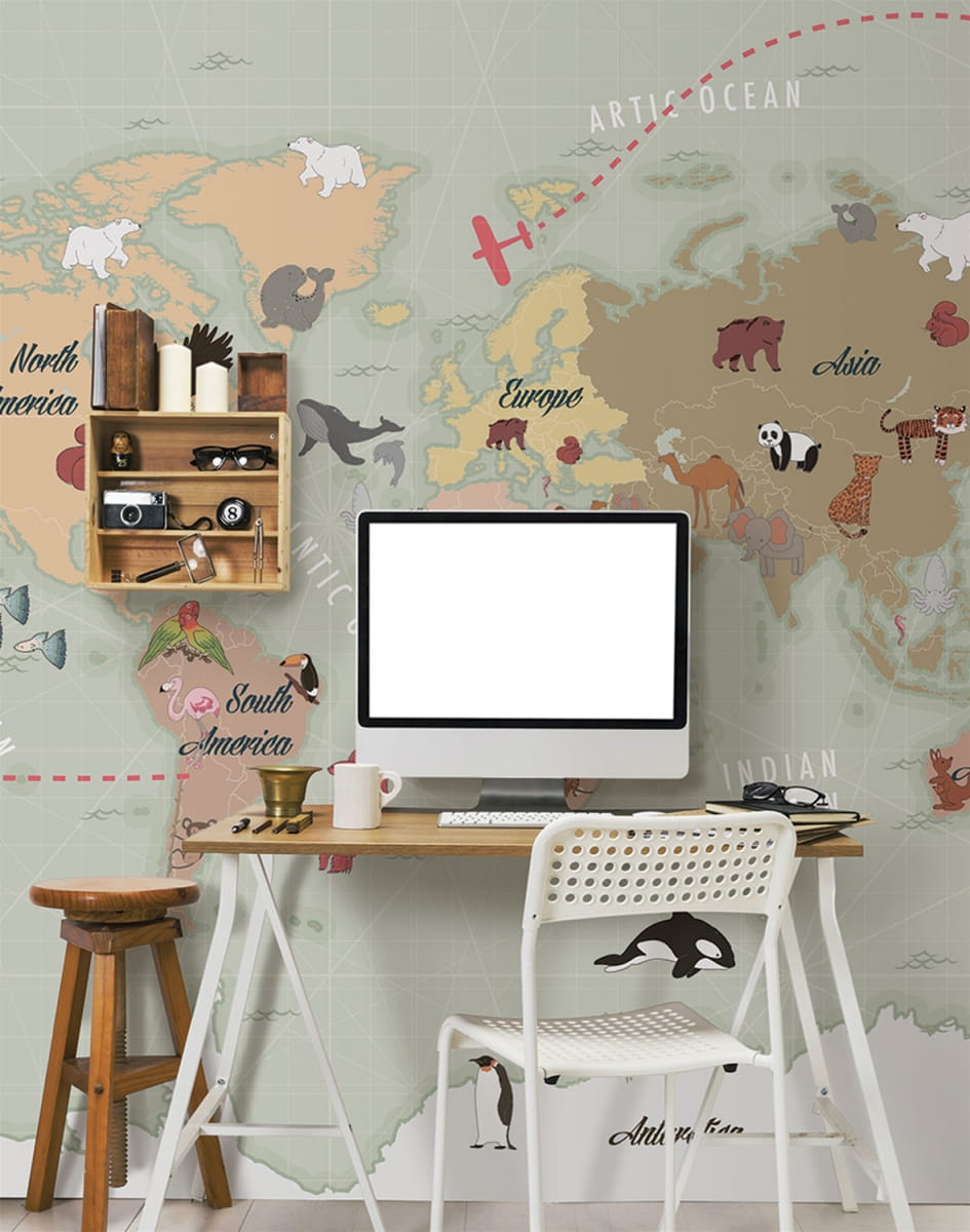 London Art 15098 02 Exclusive Kids Lake - mural z mapą świata