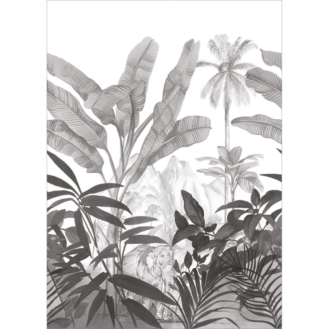 Tapeta CASELIO MOONLIGHT HATHI 10128 to uroczy mural, który składa się jedynie z jednego elementu. Wygląda niczym obraz namalowany ręcznie ołówkiem. Z odmętów tropikalnej dżungli, spośród bananowców i palm wyłaniają się ogromne, przykuwające uwagę góry. Jednak to nie one są bohaterem tego muralu - tapety CASELIO MOONLIGHT HATHI 10128. Na pierwszy plan wysuwa się majestatyczny mieszkaniec dżungli - słoń. To osobliwa tapeta, która wprowadzi niezwykłą atmosferę w absolutnie każdym wnętrzu.