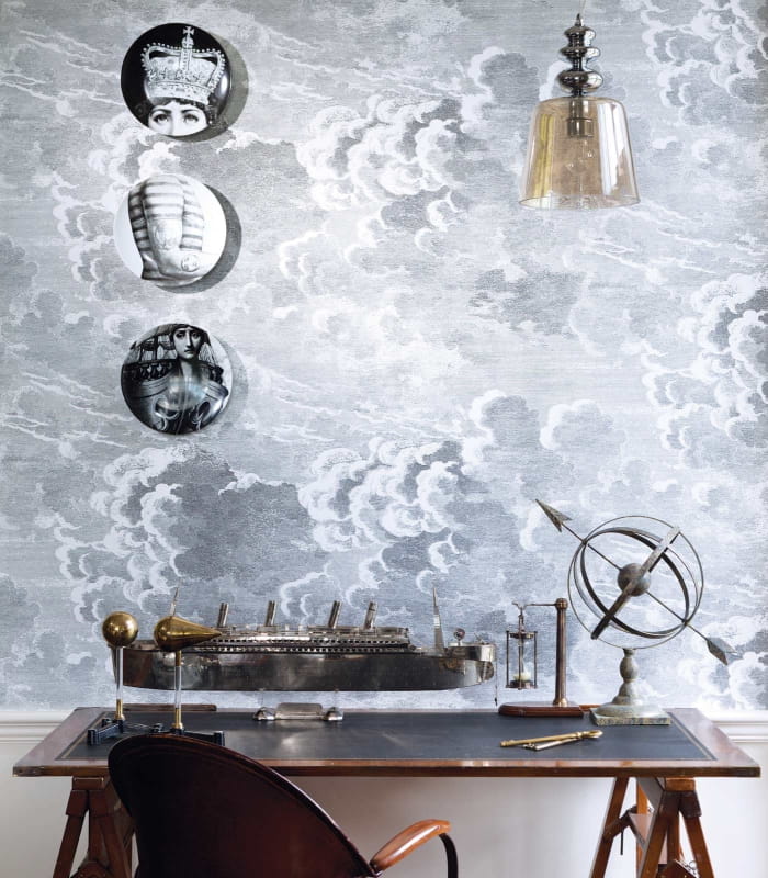 Tapety z serii Cole & Son Fornasetii II to kontynuacja niebanalnych motywów zaczerpnięty ze sztuki włoskiego projektanta Piero Fornasetti. Kolekcja zawiera m.in. ekscentryczne wzory maszyn latających, detali architektonicznych oraz zabawnych małp. Wszystkie odwzorowują teatralny i kapryśny świat. Zabawnymi towarzyszami weneckiej Prokuracji są dwie małpy, które wędrują między kolumnami i łukami. Oferowane w czterech kolorach pasujących bezpośrednio do wzoru Procuratie, małpy są zebrane w skoordynowanych odcieniach. NUVOLETTE< Nuvolette jest pięknym przedstawieniem pochmurnego nieba i została zaprojektowana jako mniejsza wersja istniejącego wzoru Cole & Son o nazwie Nuvole. Przedstawiona w trzech spokojnych kolorystykach: neutralnej, blado niebieskiej i granatowej, które współgrają z Macchine Volanti i Balaustra oraz czwartej kolorystyce czerni i bieli tworzącej bardziej uderzający i burzowy efekt. Ten wzór mierzy sobie łącznie 137cm szerokości i jest sprzedawany w dwóch rolkach mierzących 68.5cm każda.