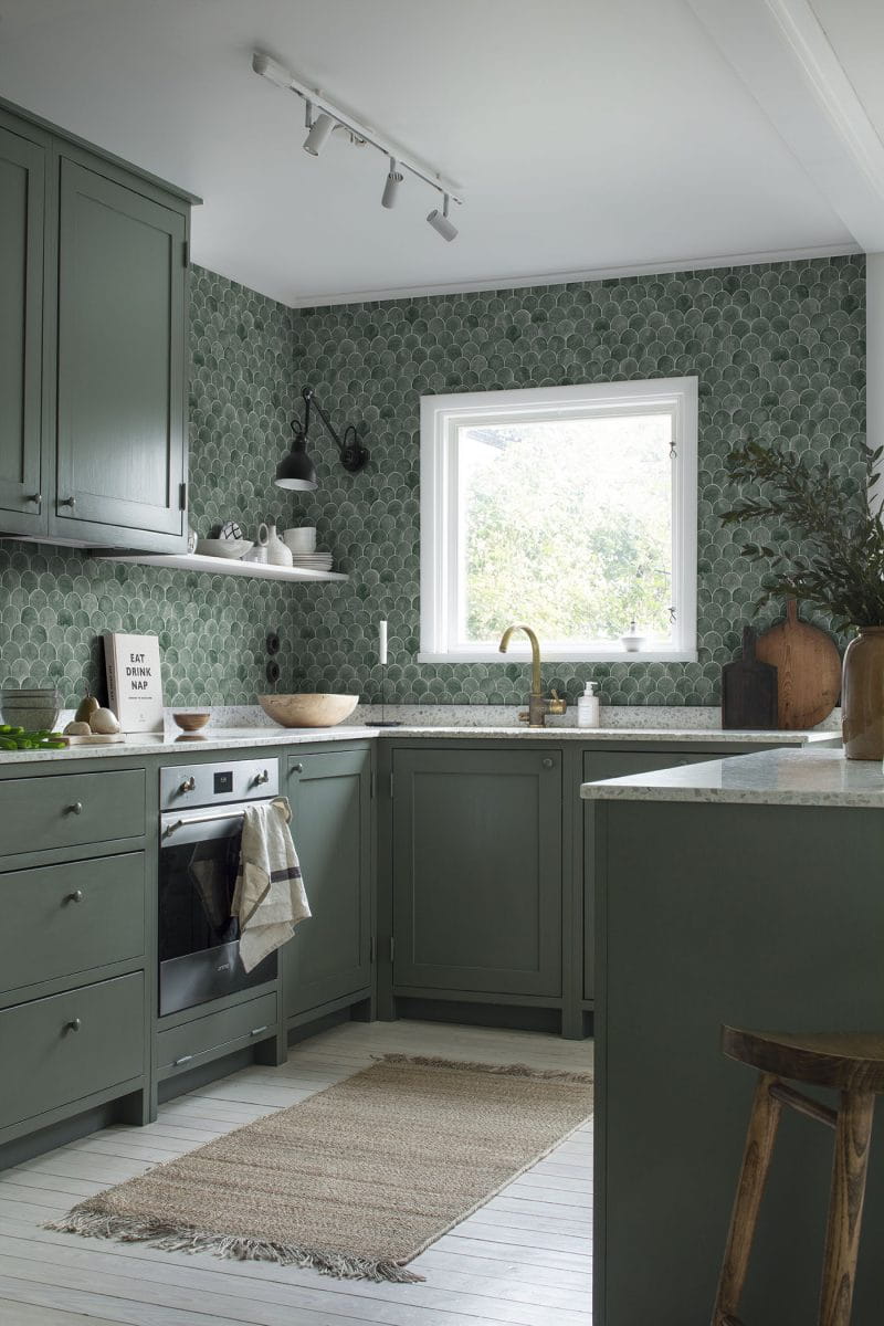 Tapeta Sandberg Familj II Igor 241-88 Jade to subtelna harmonia geometrycznego wzoru i artystycznej swobody, która wprowadza do wnętrza spokój i miękkość. Motyw łuków, pomalowany akwarelą, tworzy wrażenie delikatnego ruchu i głębi, jednocześnie nadając przestrzeni nowoczesny, ale ciepły charakter. Dzięki elastyczności montażu możesz zdecydować, czy łuki mają unosić się ku górze, czy delikatnie opadać, nadając wnętrzu indywidualny wyraz. Stonowana kolorystyka oraz subtelne przejścia tonów sprawiają, że tapeta Sandberg 241-88 Familj II Igor Jade doskonale wpisuje się w różnorodne style aranżacji – od minimalistycznych, po bardziej eklektyczne. Jej wzór, choć wyrazisty, pozostaje nienachalny, dzięki czemu świetnie sprawdzi się zarówno w dużych przestrzeniach, jak i w mniejszych pomieszczeniach.