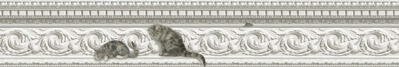 Dowcipna aranżacja klasycznej tapety z archiwum Cole & Son, Paddy & Louis przedstawiają dwa złośliwe koty oraz nieuchwytną mysz w stylu regencji. Tapeta dostępna w jednej kolorystyce kamienia i mory. Mierzy ona 34cm wysokości , a całe trio kotów i myszy powtarza się dwukrotnie w całej 7m rolce.