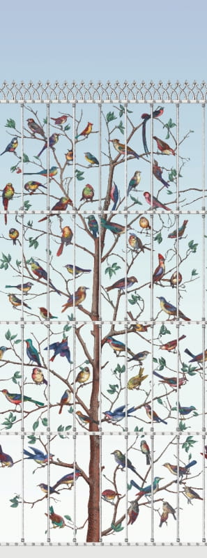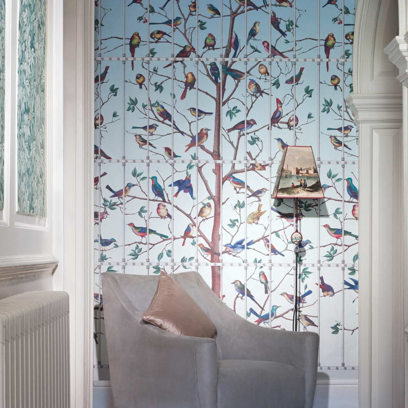 Tapety z serii Cole & Son Fornasetii II to kontynuacja niebanalnych motywów zaczerpnięty ze sztuki włoskiego projektanta Piero Fornasetti. Kolekcja zawiera m.in. ekscentryczne wzory maszyn latających, detali architektonicznych oraz zabawnych małp. Wszystkie odwzorowują teatralny i kapryśny świat. Zabawnymi towarzyszami weneckiej Prokuracji są dwie małpy, które wędrują między kolumnami i łukami. Oferowane w czterech kolorach pasujących bezpośrednio do wzoru Procuratie, małpy są zebrane w skoordynowanych odcieniach. UCCELLI Oryginalnie stworzona jako dekoracyjny parawan, Uccelli została po raz pierwszy zaprojektowana przez Cole and Son specjalnie dla luksusowego hotelu Argentario Peninsula w Toskanii. Ze względu na duże zainteresowanie przygotowaliśmy go tutaj w dwóch sezonowych wersjach kolorystycznych: jasnych letnich kolorach oraz chłodniejszych zimowych odcieniach. Zaprojektowana jako powtarzalny wzór na 1.04cm szerokości i 2.8m wysokości, sprzedawana jest w 52cm rolkach, które łączy się tworząc pełny wzór na wysokości i szerokości.