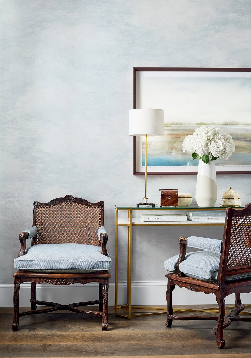 Tapeta Anna French Belvedere Cloud 9 Gold on Pearl AT16160 prezentuje delikatnie rozmyty wzór inspirowany miękkim obłokiem zawieszonym na jasnym, ciepłym tle. Dekoracja Anna French AT16160 Belvedere Cloud 9 Gold on Pearl tworzy efekt subtelnego, tonalnego przejścia, który przybliża do efektu ręcznie malowanej powierzchni. Doskonale integruje się z klasycznym wystrojem gabinetu, sypialni lub pokoju dziennego, szczególnie we wnętrzach w stylu modern classic lub soft minimalism. Sprawdza się również jako uzupełnienie większych projektów dekoracyjnych, dzięki czemu może stanowić spójną kontynuację murali lub tła dla sztuki ściennej. Wykonano ją na podkładzie z flizeliny, który umożliwia szybki i wygodny montaż – klej nakłada się bezpośrednio na ścianę. Tapeta łączy walory estetyczne z funkcjonalnością, wprowadzając do aranżacji oddech i lekkość.