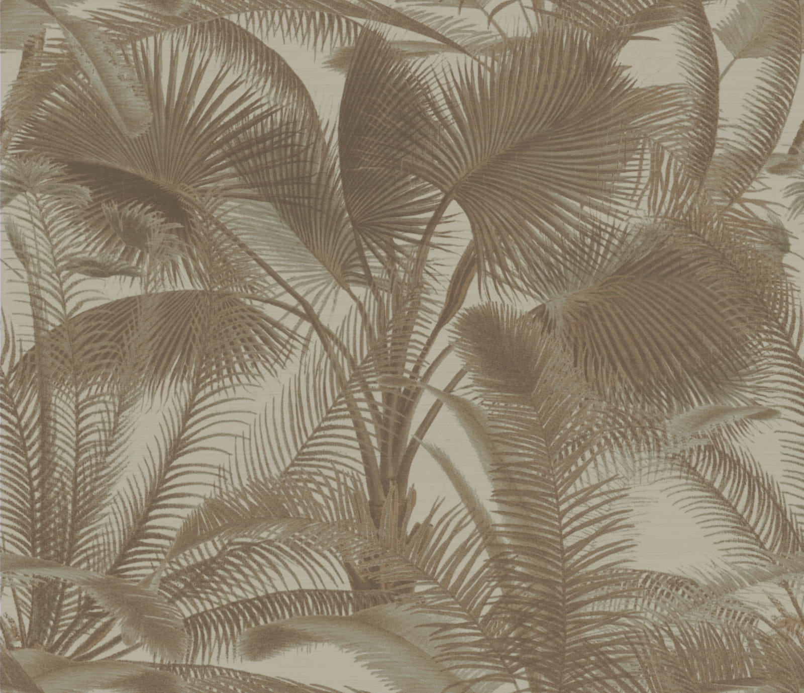 Mural Armani Casa Precious Fibers 1 9022 Aida przedstawia rozłożyste, tropikalne liście o wyrazistej strukturze, zanurzone w stonowanych odcieniach. Detale liści zostały oddane z niezwykłą precyzją, tworząc wrażenie głębi i subtelnego trójwymiarowego efektu, dzięki czemu dekoracja ożywia przestrzeń, nadając jej dynamicznego charakteru. Projekt ten jest idealnym wyborem do wnętrz, które mają stać się oazą spokoju i relaksu, wnosząc do nich harmonię natury połączoną z elegancją i wyrafinowaniem. Kolorystyka inspirowana tropikalnymi pejzażami współgra z różnorodnymi stylami aranżacji, dodając im lekkości oraz nieco egzotycznej atmosfery. Mural Armani Casa 9022 Precious Fibers 1 Aida doskonale sprawdzi się zarówno w nowoczesnych, jak i klasycznych wnętrzach, podkreślając ich charakter i dodając wyrafinowanego akcentu.
