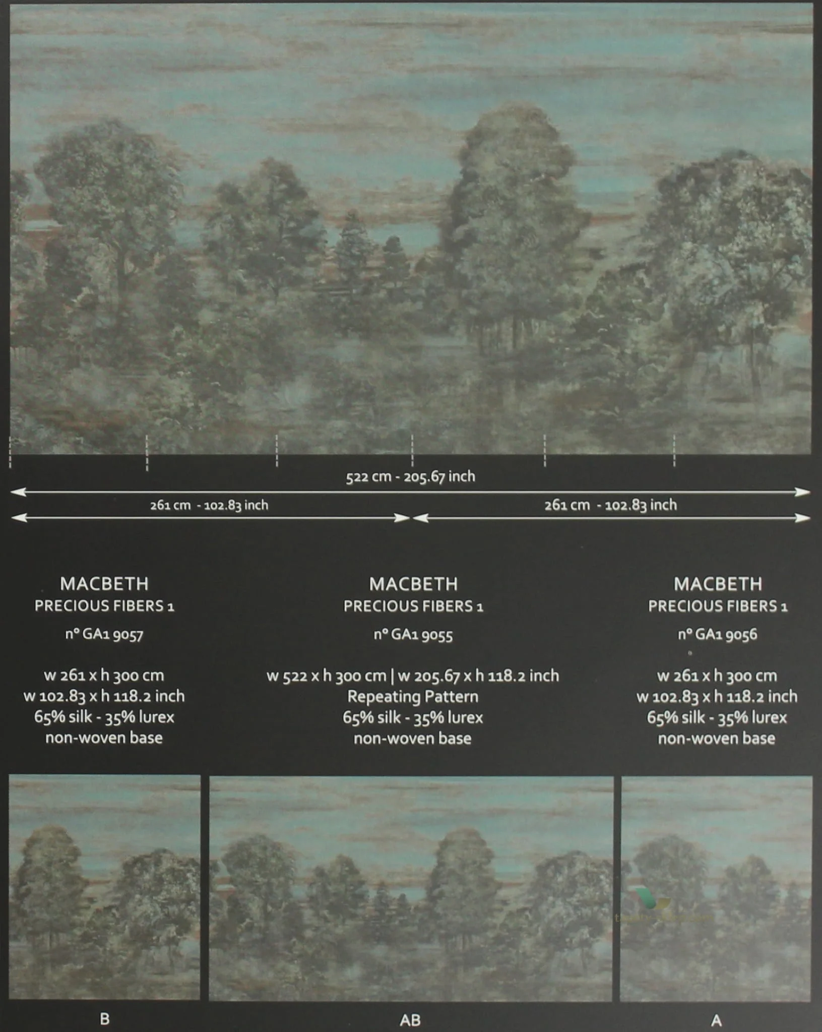 Armani Casa 9057 Precious Fibers 1 Macbeth - mural z jedwabnej tkaniny z krajobrazem lasu