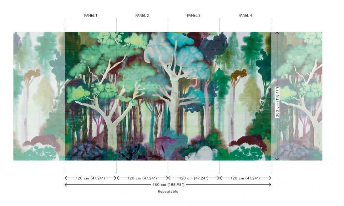 Mural Arte Alaya Banyan 11531 Deep Forest wzięła swoją nazwę od figowca, który jest powszechnie spotykany wzdłuż Jedwabnego Szlaku. Ten wyjątkowy, panoramiczny wzór drzew pozwala wędrować przez marzycielski krajobraz fantasy, pośród ukrytych dolin i szczytów Himalajów. Co więcej, fakt, że mural Arte 11531 Alaya Banyan Deep Forest posiada wygląd czystego jedwabiu, naprawdę ożywia całość. Projekt ten wspaniale odnajdzie się na ścianie akcentującej np. za łóżkiem w sypialni lub kanapą w salonie.