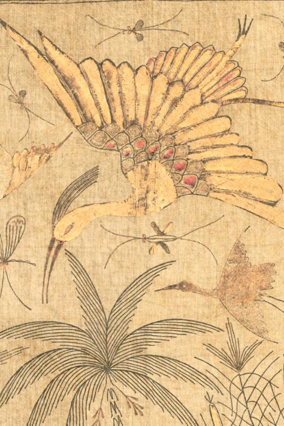 Arte 30370 Essentials Kaolin Passeggio Golden Olive - mural w żurawie na tle imitującym pergamin