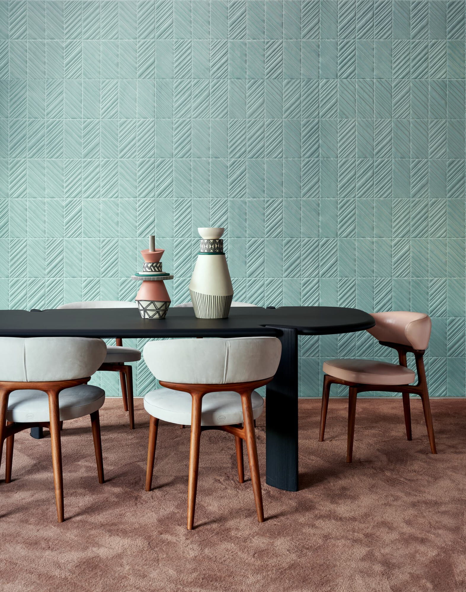 Arte 72512 Kanso Iki Aqua - tapeta aksamitna w trójwymiarowy wzór płytek z jodełką