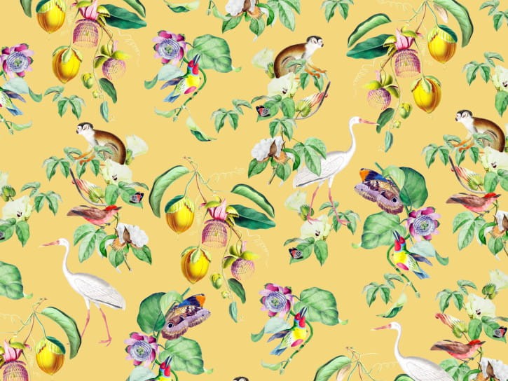 BN 200431 Creative Lab Amsterdam Happy Paradise - mural z motywem ptaków, owoców i dzikich zwierząt