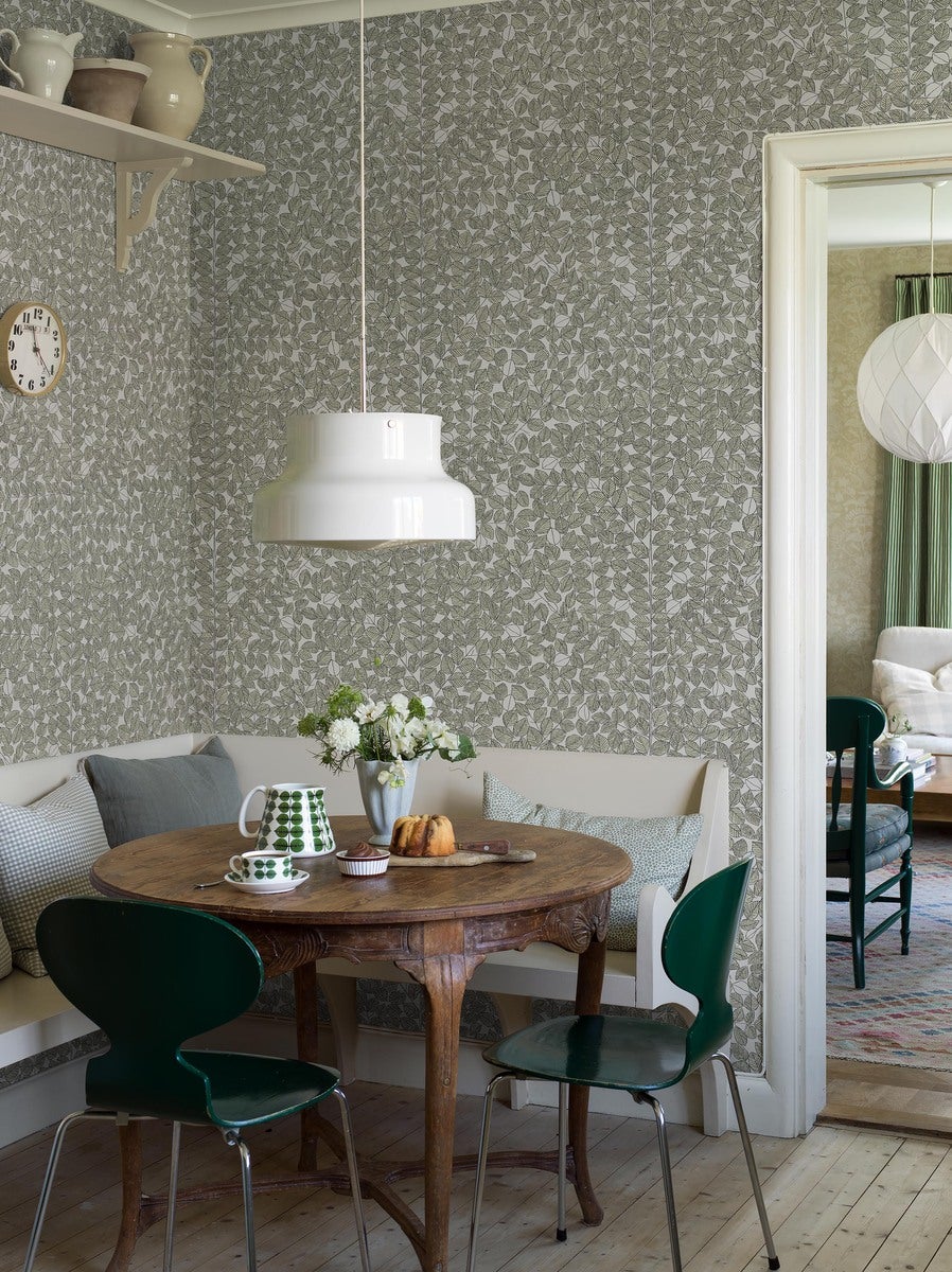 Tapeta Boras Tapeter Scandinavian Designers Viola Gråsten Romans 1769 zachwyca subtelnym, powtarzalnym motywem liści, który wprowadza do wnętrza wrażenie spokoju i naturalnej równowagi, charakterystycznej dla skandynawskiego wzornictwa. Wzór został zaprojektowany przez Violę Gråsten w 1964 roku i do dziś pozostaje przykładem udanego połączenia swobody rysunku z precyzją kompozycji. Dzięki swojej oszczędnej, a jednocześnie dekoracyjnej formie tapeta doskonale buduje przytulną atmosferę bez przytłaczania przestrzeni. Podkład flizelinowy zapewnia stabilność i precyzję montażu, a certyfikat FSC potwierdza odpowiedzialne pochodzenie papieru, natomiast powierzchnia przystosowana do czyszczenia sprawia, że ściana przez wiele lat jest estetyczna i zadbana. Tapeta Boras Tapeter Scandinavian Designers Viola Gråsten Romans 1769 szczególnie dobrze wpisuje się w aranżacje w duchu skandynawskim oraz vintage, gdzie liczy się harmonia, prostota i bliskość natury.