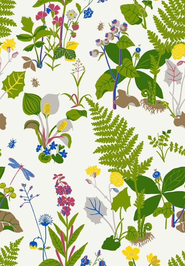 Tapeta Boras Tapeter Scandinavian Designers Gocken Jobs Trollslända 1788 to wyjątkowy projekt autorstwa Gocken Jobs, pierwotnie stworzony w 1945 roku na potrzeby wystawy NK, w którym bogactwo roślin, paproci i leśnych kwiatów zostało przedstawione w intensywnej, pełnej życia kolorystyce na jasnym tle. Dynamiczna, ilustracyjna kompozycja przyciąga wzrok i buduje atmosferę bliskości natury, sprawiając, że wnętrze nabiera wyrazistego, a jednocześnie przyjaznego charakteru. W przestrzeniach inspirowanych stylem vintage lub cottage wzór ten podkreśla dekoracyjność i rękodzielniczy klimat, natomiast w aranżacjach boho staje się mocnym, artystycznym akcentem. Podkład flizelinowy zapewnia stabilność i precyzję montażu, a certyfikat FSC potwierdza odpowiedzialne pochodzenie papieru, zaś powierzchnia przystosowana do czyszczenia pozwala na łatwe utrzymanie ścian w doskonałej kondycji nawet przy intensywnym użytkowaniu. Tapeta Boras Tapeter Scandinavian Designers Gocken Jobs Trollslända 1788 to propozycja dla osób, które chcą połączyć dekoracyjność, trwałość i autentyczne skandynawskie wzornictwo.