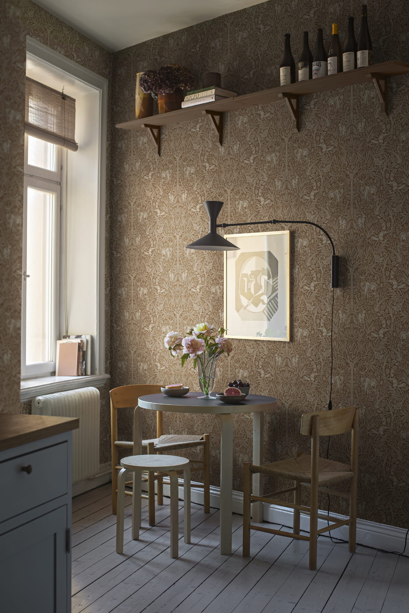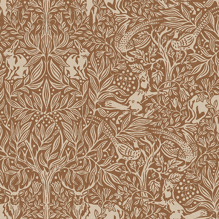 Tapeta Boras Tapeter New Heritage 2045 Under The Elder Tree została zaprojektowana przez słynna projektantkę Noomi Spange. Wzór przedstawia dostojnego jelenia i nieśmiałego zająca ukrywających się pod gęstym listowiem potężnego czarnego bzu. Na drugim planie przebiegły lis ściga uciekające bażanty, które szukają schronienia w krzaku głogu. Ta niezwykła historia opowiedziana za pomocą tapety będzie doskonałą dekoracją w centralnym punkcie domu. Dzięki temu projektowi uzyskasz efekt inspirowany sztuką i rzemiosłem, który pasuje zarówno do klasycznych, jak i nowoczesnych wnętrz. Tapeta Boras Tapeter New Heritage 2045 Under The Elder Tree dostępna jest w pięciu wariantach kolorystycznych.