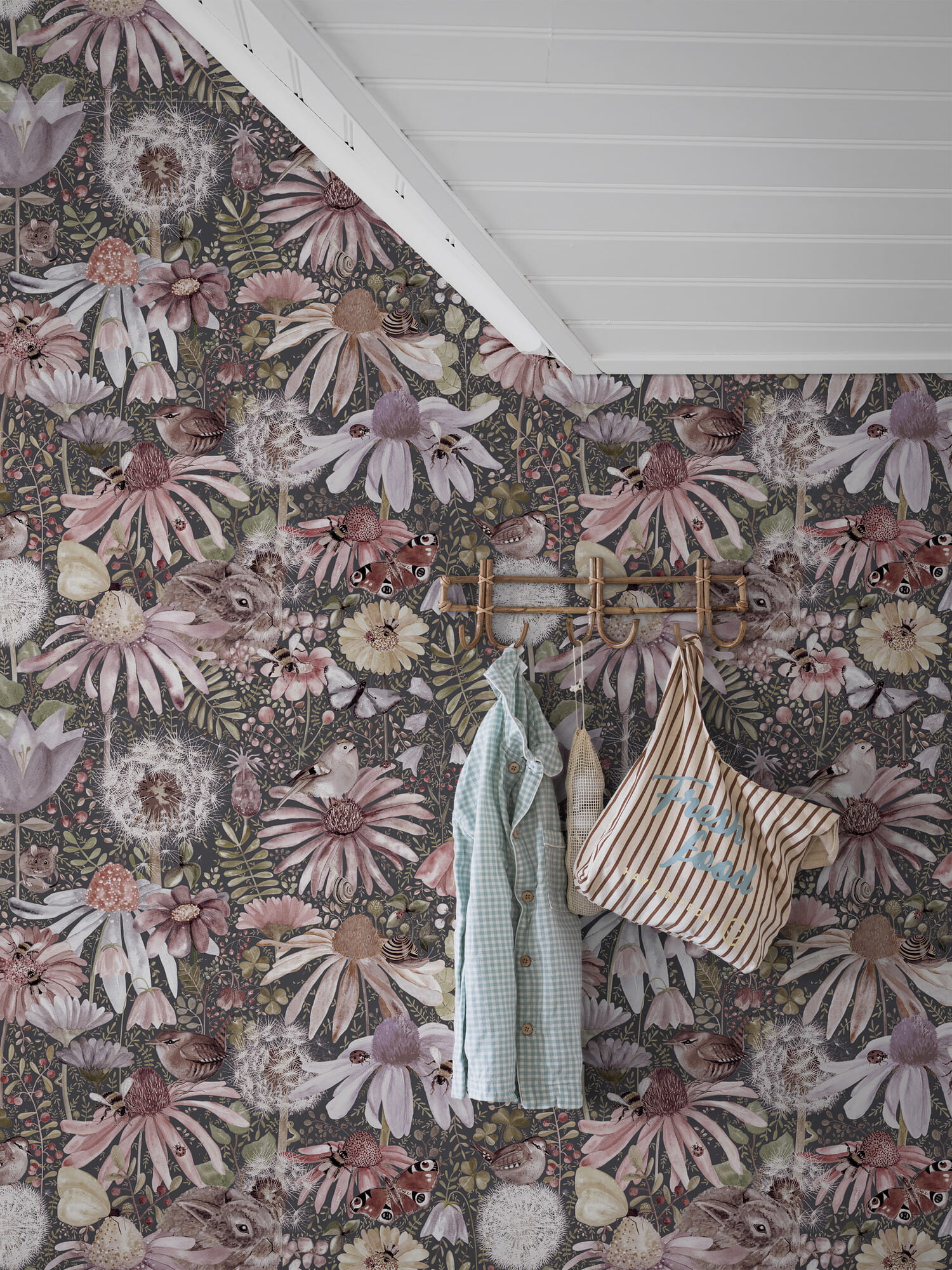 Mural Boras Tapeter Studio Meadow 9474W to rozkosznie fantazyjna, wielkoformatowa dekoracja ścienna, która zamieni pomieszczenie w senną, letnią łąkę pełną życia. Urocze króliki i myszy kryją się wśród delikatnej zieleni, a nad kwiatami krążą trzmiele i motyle. Projekt wspaniale odnajdzie się w dziecięcych aranżacjach, gdzie pobudzi wyobraźnię, oraz w sypialni lub salonie, gdzie wprowadzi harmonijny efekt. Mural Boras Tapeter 9474W Studio Meadow z pewnością wprowadzi letni klimat do wnętrza.