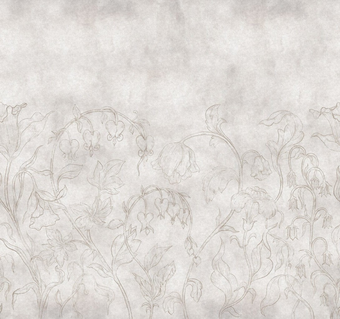Mural Boras Tapeter Studio Bunring Heart 9597W Beige przypomina piękny obraz ścienny, który zaczynał się jako szkic na otynkowanej ścianie. Krwawiące serca, dzwonki i inne kwiaty są subtelnie zaznaczone ołówkową szarością na delikatnym tle. Lekki i zwiewny projekt wnosi do pomieszczenia naturalną harmonię, tworząc spokojną i elegancką atmosferę. Mural Boras Tapeter 9597W Studio Burning Heart Beige jest drukowany cyfrowo i całkowicie dostosowany do wymiarów ściany, zapewniając perfekcyjne dopasowanie i wyjątkowy efekt wizualny.