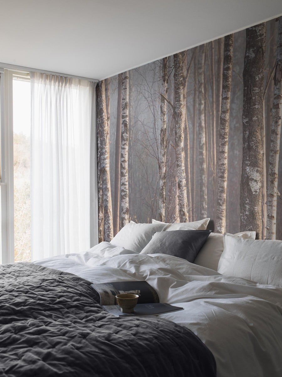 Mural Boras Tapeter Marie Mattsson Björkdimma Grey 9777W ukazuje graficzne piękno brzóz spowitych mgłą, gdzie czarno-białe wzory pni przeplatają się z delikatnym, srebrzystym światłem. Kompozycja zachwyca spokojem i minimalistyczną elegancją. Idealnie wpisuje się w estetykę skandynawskiego wnętrza. Ujęcie to łączy fotograficzną precyzję z malarską miękkością - efekt przypomina delikatny rysunek tuszem, w którym każdy detal oddaje rytm natury. Marie Mattsson z niezwykłą intuicją potrafi uchwycić moment ciszy, zamieniając go w ponadczasową dekorację o głębokim, refleksyjnym charakterze. Produkt powstaje z papieru pochodzącego ze zrównoważonej gospodarki leśnej, zgodnego z rygorystycznymi certyfikatami CE i FSC. Druk oparto na ekologicznych farbach wodnych, wolnych od PVC. Mural Boras Tapeter 9777W Marie Mattsson Björkdimma Grey wprowadza do przestrzeni harmonię, światło i nordycką prostotę w najczystszej formie.