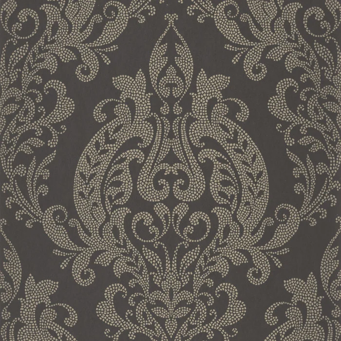 Tapeta Casadeco Elixir Quintessence EXIR 201999710 Noir Fusain buduje we wnętrzu wyrazistą narrację dekoracyjną opartą na klasycznym motywie adamaszku i gęsto rozmieszczonych ornamentach roślinnych o wysokiej precyzji kompozycyjnej. Rytmiczny układ stylizowanych liści, esownic oraz symetrycznych medalionów porządkuje powierzchnię ściany i nadaje jej wrażenie architektonicznej głębi. Subtelnie połyskująca faktura reaguje na światło w sposób dyskretny, wydobywa detal rysunku i wzmacnia jego wizualną czytelność. Przestrzeń zyskuje dzięki temu klarowną strukturę oraz wyraźny punkt odniesienia dla pozostałych elementów aranżacji. Motyw adamaszku sprzyja stabilności kompozycyjnej i podkreśla reprezentacyjny wymiar wnętrza. Tapeta w adamaszek harmonijnie wpisuje się w aranżacje modern classic oraz glamour i stanowi eleganckie tło dla tapicerowanych mebli, dekoracyjnych tkanin oraz starannie dobranych dodatków. Tapeta Casadeco 201999710 Elixir Quintessence Noir Fusain nadaje przestrzeni charakter wysmakowanej, konsekwentnej estetyki i podkreśla jej prestiż.