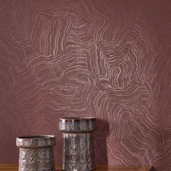 Tapeta Casadeco Elixir Infusion EXIR 202028943 Rouge Grenat przedstawia organiczny motyw fal oparty na swobodnie prowadzonych, nieregularnych liniach, które tworzą miękki, płynny rysunek o kojącym charakterze wizualnym. Kompozycja wzoru przywodzi na myśl naturalne struktury oraz subtelne przenikanie form, co nadaje ścianie delikatną głębię i spokojną dynamikę. Matowa powierzchnia z delikatną strukturą reaguje na światło w sposób dyskretny, podkreśla zmienność rysunku i wzmacnia jego przestrzenny charakter. Dzięki temu dekoracja zachowuje lekkość i nie przytłacza aranżacji. Motyw fal wspiera równowagę percepcyjną oraz ogranicza nadmiar bodźców we wnętrzu. Tapeta z efektem mory harmonijnie wpisuje się w aranżacje nowoczesne oraz modern classic i stanowi subtelne tło dla prostych form mebli, naturalnych materiałów oraz miękkich tkanin. Tapeta Casadeco 202028943 Elixir Infusion Rouge Grenat nadaje przestrzeni wrażenie uporządkowanego spokoju i estetycznej konsekwencji.