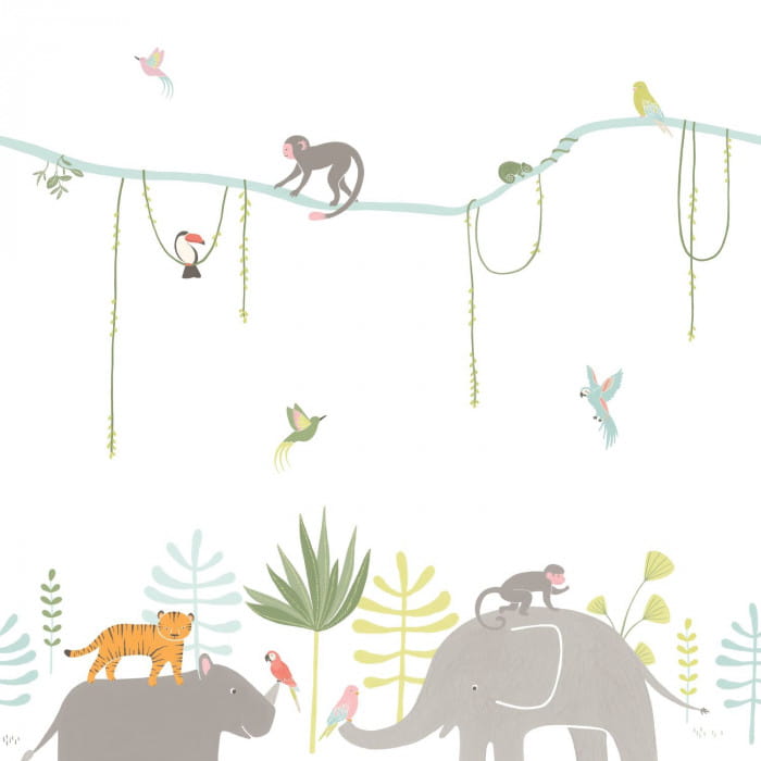Mural Casadeco Happy Dreams Panoramique Jungle 82994343 to zaskakująca i pełna zabawy dekoracja. Projekt przedstawia scenę zwierząt z dżungli, w tym słonia, nosorożca, tygrysa, tukany papugi i paprocie z dżungli, doskonale bawiące się ze sobą i malują uśmiech na twarzach naszych dzieci. Ta okleina jest dostarczana w 4 panelach, każdy o szerokości 50 cm i długości 280 cm, co ułatwia powieszenie. Mural Casadeco Happy Dreams Panoramique Jungle 82994343 to cudowna propozycja do dziecięcych przestrzeni. Niesamowity urok idzie w parze z zabawną grafiką, by każda chwila, była pełna radości.