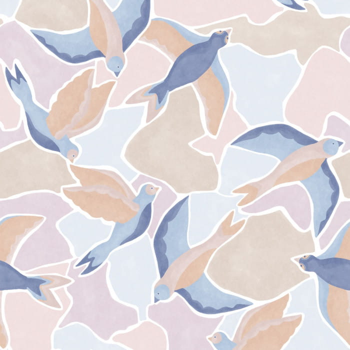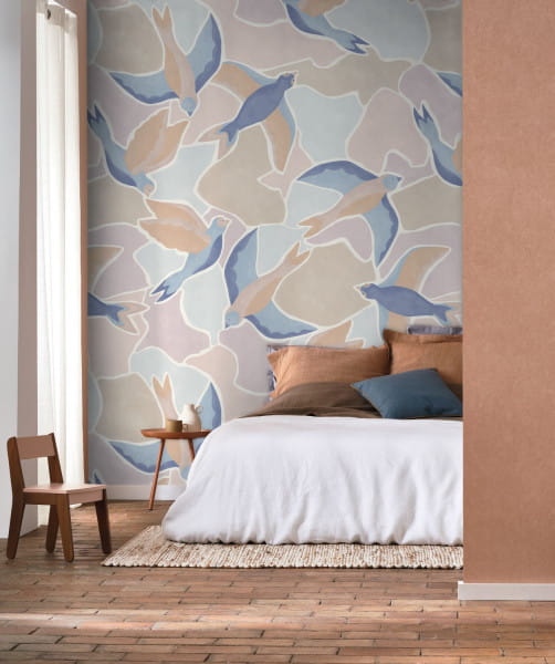 Mural Casadeco Wonderwalls 88996404 Songerie przedstawia panoramę o niezrównanej płynności, niesionej miękkością kolorów. Unoszące się barwne ptaki skontrastowano na geometrycznym niebie, tworząc artystyczny witraż ścienny. Motyw przynosi do wnętrza lekkość i błogi spokój. Stworzy doskonałe miejsc do odpoczynku w nowoczesnej sypialni. Mural Casadeco Wonderwalls 88996403 Songerie dostępny jest w trzech wariantach kolorystycznych.
