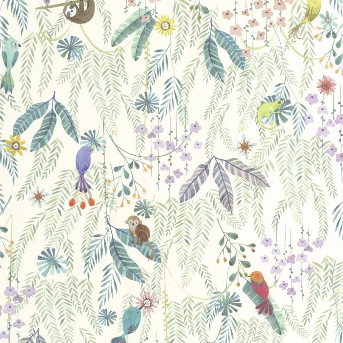 Tapeta Casadeco Once Upon A Time 2 Tropical Forest Multico fond blanc OUTD 200757447 to idealnie wyważona dekoracja ścienna, która łączy w sobie bogactwo tropikalnych roślin z delikatnością. Zaprezentowany na niej roślinny motyw jest idealnie zbalansowany - jest na tyle ciekawy, żeby inspirować wyobraźnię najmłodszych, a jednocześnie jego kompozycja i kolory nie przytłoczą przestrzeni. Ten ponadczasowy wzór wprowadzi do każdego wnętrza świeżość i przytulność. Tapeta Casadeco Once Upon A Time 2 Tropical Forest Multico fond blanc OUTD 20075 74 47 doskonale sprawdzi się w przestrzeniach, w których ważna jest przyjemna atmosfera, która sprzyja wypoczynkowi i kreatywnym zabawom. Świetnie komponuje się z meblami w jasnych, neutralnych odcieniach oraz dodatkami inspirowanymi przyrodą. Pięknie połączy się z drewnem, roślinami doniczkowymi i miękkimi tekstyliami.