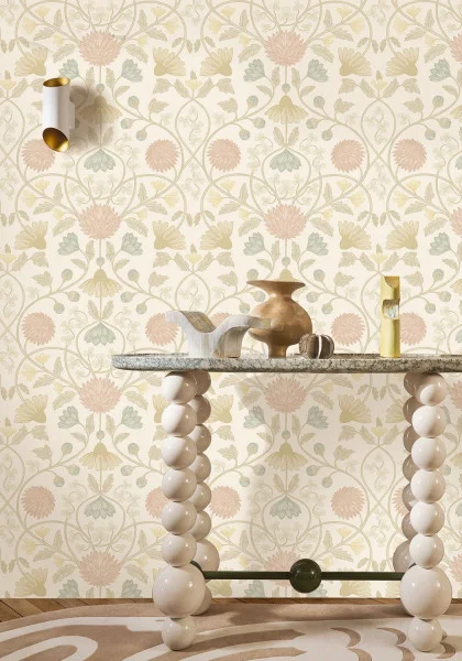Tapeta Casamance Isadora Hippolyte Ivoire/doré 7045 05 08 emanuje elegancją inspirowaną XIX-wieczną dekoracyjnością. Stworzy wysublimowaną atmosferę pełną miękkiego światła i klasycznego uroku. Ażurowy układ kwiatów, oparty na harmonijnej, powtarzalnej strukturze, sprzyja poczuciu równowagi oraz porządku wizualnego, co wzmacnia efekt przytulności we wnętrzu. Subtelny połysk rozświetla kompozycję niczym refleksy odbijające się od szklanych dachów paryskich pasaży, co wprowadza głębię i wrażenie szlachetnej lekkości. Flizelinowy podkład potwierdza wysoką jakość produktu i ułatwia montaż, co przekłada się na precyzyjne wykończenie ścian. Tapeta Casamance 7045 05 08 Isadora Hippolyte Ivoire/doré wzbogaca przestrzeń o przytulny, wyrafinowany klimat vintage i wprowadza do niej artystyczny, ponadczasowy charakter.