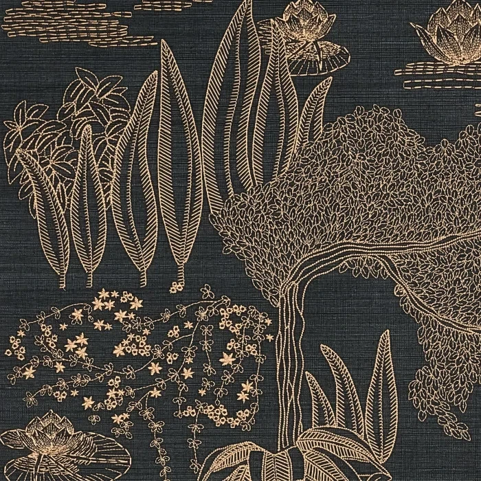 Casamance 71360212 Hikari Hasu Naturel mordoré - tapeta haftowana w ogród japoński