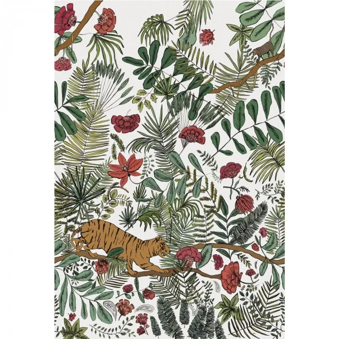 Casamance 74543582 Panoramas Pashu Blanc - mural w egzotyczną roślinność i tygrysy