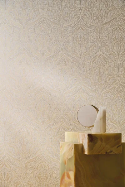 Tapeta Casamance Isadora Felix Ivoire/doré 7582 10 18 przywodzi na myśl elegancję historycznych pasaży, w których ornamentalne detale tworzyły wysublimowaną scenografię codzienności. Kompozycja oparta na dwukolorowym układzie roślinnych linii buduje spójny rytm, który porządkuje przestrzeń i podkreśla jej ponadczasowy charakter. Połączenie opalizujących refleksów oraz wypukłego lakieru dodaje powierzchni głębi i podnosi wyrazistość wzoru, tworząc efekt świetlnych akcentów kojarzących się z migotaniem światła na przeszklonych konstrukcjach paryskich galerii. Struktura pozostaje elegancka i wyważona, dzięki czemu wzbogaca wnętrze szlachetną dekoracyjnością. Flizelinowy podkład potwierdza wysoką jakość materiału i zapewnia staranne wykończenie. Tapeta Casamance 7582 10 18 Isadora Felix Ivoire/doré wprowadza do aranżacji klasyczny, dopracowany klimat o artystycznym tonie.
