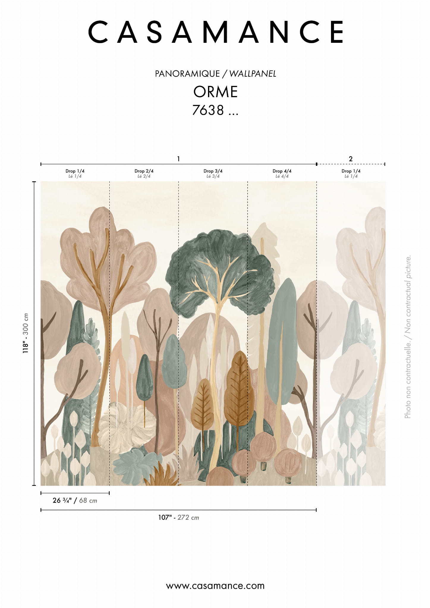 Casamance 76381018 Panoramas 3 Orme Amande/multico - mural w motyw lasu