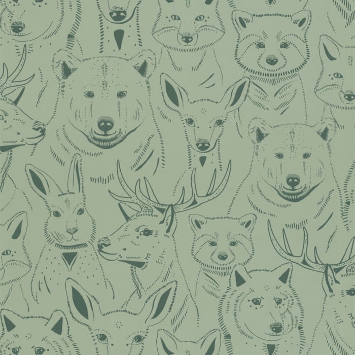 Caselio 103527001 Autour Du Monde S’amuser Menthe - tapeta leśne zwierzątka