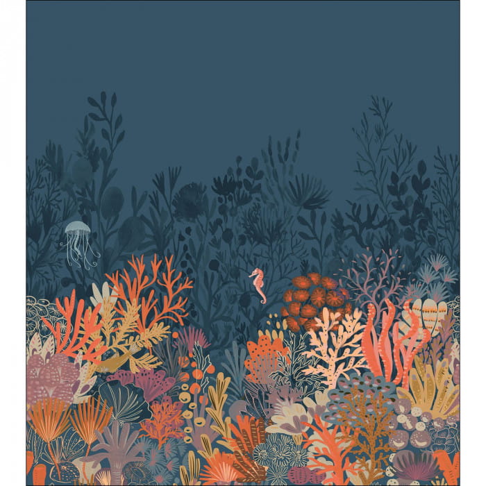 Mural Caselio Pimp My Wall 104906302 Magic Seafloor L to idealny sposób na wniesienie spokoju i harmonii do wnętrza, który zapewnia domownikom wrażenie bycia pod wodą, bez konieczności nurkowania. Projekt ukazuje fascynującą morską toń, gdzie podwodne rośliny i koralowce stworzyły zapierający dech w piersiach krajobraz na dnie morskim. Każdy szczegół tego ręcznie rysowanego wzoru został starannie zaprojektowany, aby oddać piękno rafy koralowej i życia podwodnego. Styl nowoczesny i minimalistyczny tego muralu doskonale komponuje się z różnymi aranżacjami wnętrz, dodając pomieszczeniu elegancji i świeżości, dlatego doskonale sprawdzi się na ścianie akcentowej w sypialni i salonie. Mural Caselio Pimp My Wall 104906302 Magic Seafloor L dostępny jest w dwóch wersjach kolorystycznych i trzech rozmiarach.