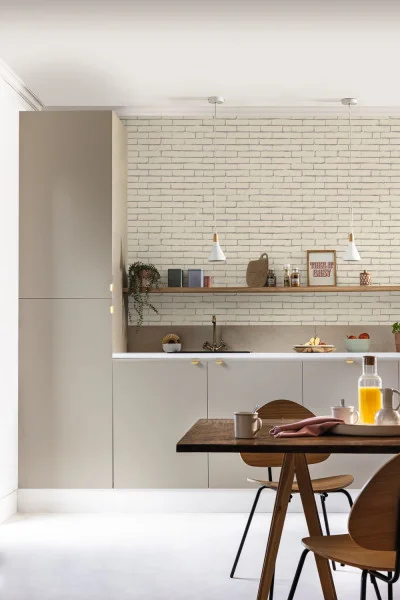 Tapeta Caselio Kitchen Box Be Free Blanc KBO103290001 imituje ceglaną ścianę, któa doda wnętrzom autentycznego i industrialnego charakteru. Jej prosty, surowy wzór przywołuje klimat nowojorskich loftów, a jednocześnie pozwala stworzyć nowoczesne, minimalistyczne aranżacje. Model ten świetnie wpisuje się w styl industrialny oraz urban modern, w których naturalne faktury pełnią kluczową rolę. Tapeta idealnie komponuje się z metalowymi regałami, drewnianym stołem oraz betonowymi dodatkami. Stworzy z nimi spójną i designerską przestrzeń. Wykonanie z winylu na podkładzie flizelinowym zapewnia trwałość, łatwy montaż i wygodne utrzymanie czystości. Tapeta Caselio KBO103290001 Kitchen Box Be Free Blanc sprawdza się zarówno w aranżacjach prywatnych, jak i komercyjnych - szczególnie w kawiarniach i biurach, gdzie ceglana estetyka podkreśla nowoczesny i dynamiczny charakter wnętrza.