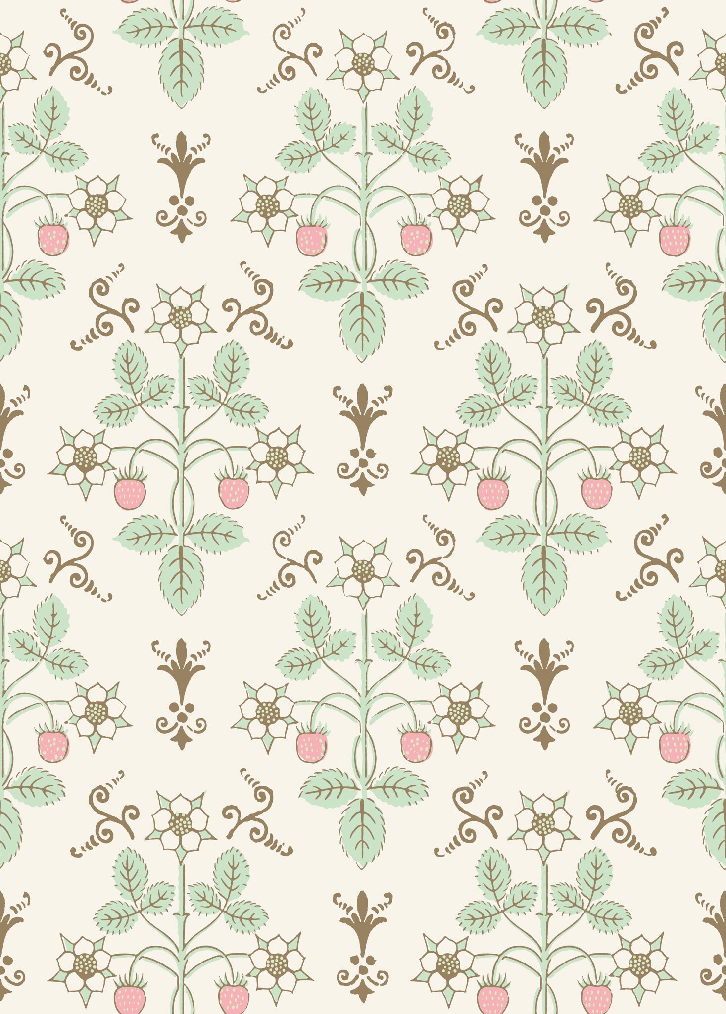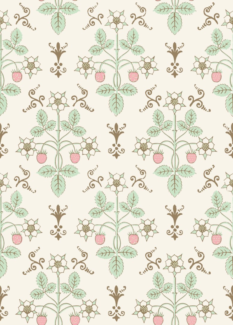 Tapeta Cole & Son 127/2011 Classics Collection Vol. I Strawberry Blush & Mint on Pastel reinterpretuje klasyczny, ręcznie drukowany wzór z połowy XIX wieku w duchu współczesnej lekkości i subtelnej narracji graficznej. Motyw oparty na rytmicznym układzie roślinnych pędów, kwiatów i dojrzałych owoców truskawki tworzy spójną, organiczną siatkę, w której każdy element zachowuje indywidualny charakter, a jednocześnie podporządkowuje się większej całości. Precyzyjny rysunek detali nadaje kompozycji niemal ilustracyjny wyraz, podkreślając botaniczne inspiracje i naturalny porządek. Tapeta Cole & Son Classics Collection Vol. I Strawberry 127/2011 Blush & Mint on Pastel wnosi do przestrzeni nutę pastoralnego uroku, przefiltrowanego przez estetykę współczesnych wnętrz. Ornament staje się formą opowieści – wyciszoną, lecz pełną życia, w której tradycja spotyka się z nowoczesnym wyczuciem proporcji, rytmu i faktury.
