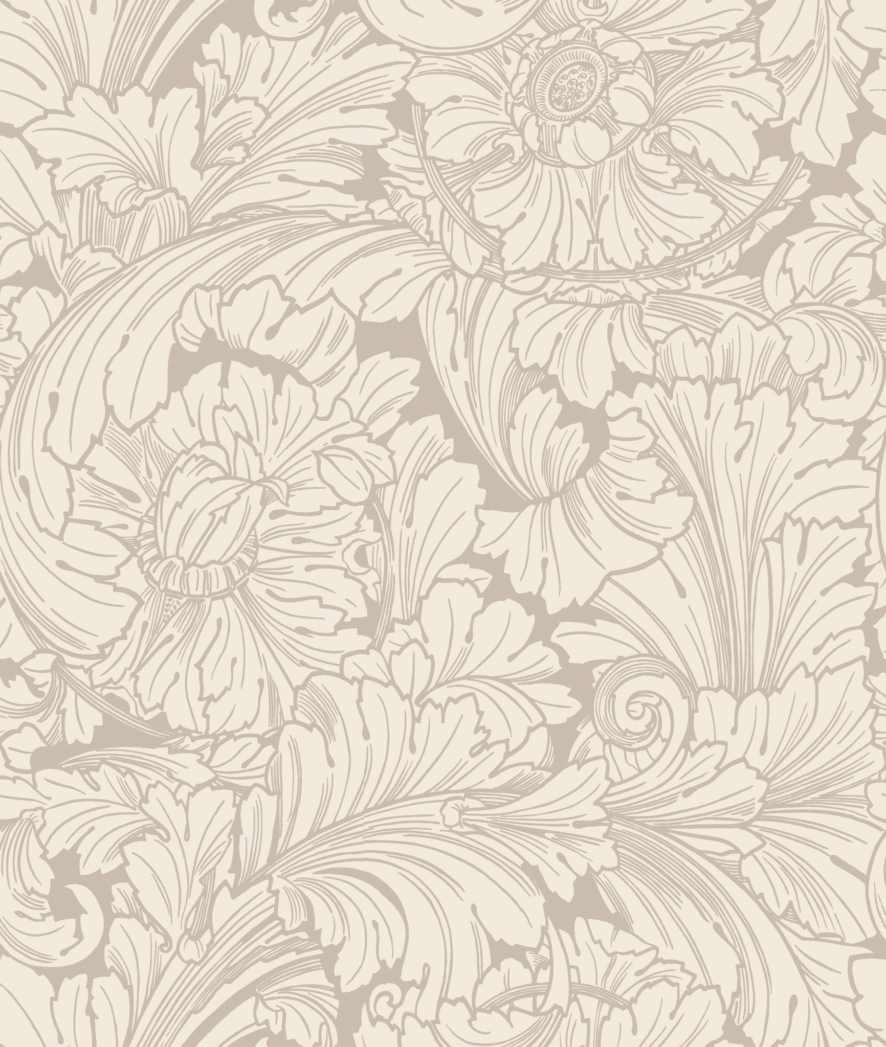 Tapeta Cole & Son 127/6029 Classics Collection Vol. I Acanthus Cream & Pebble czerpie z estetyki ruchu Arts and Crafts, prezentując klasyczny motyw akantu w wersji graficznie wyrafinowanej, ale zachowującej naturalny puls i rytm. Duże, wachlarzowe liście układają się w rozbudowaną kompozycję o silnym charakterze ornamentalnym, gdzie każdy detal – od nerwu liścia po kontur krawędzi – podkreśla rzemieślniczy rodowód wzoru. Struktura dekoracji opiera się na falującym układzie form, który wprowadza do wnętrza dynamiczną głębię i bogactwo, bez potrzeby nadmiaru. Tapeta Cole & Son Classics Collection Vol. I Acanthus 127/6029 Cream & Pebble działa jak tapicerski relief, który przekształca powierzchnię ściany w teksturalne pole o wysokiej wartości estetycznej.