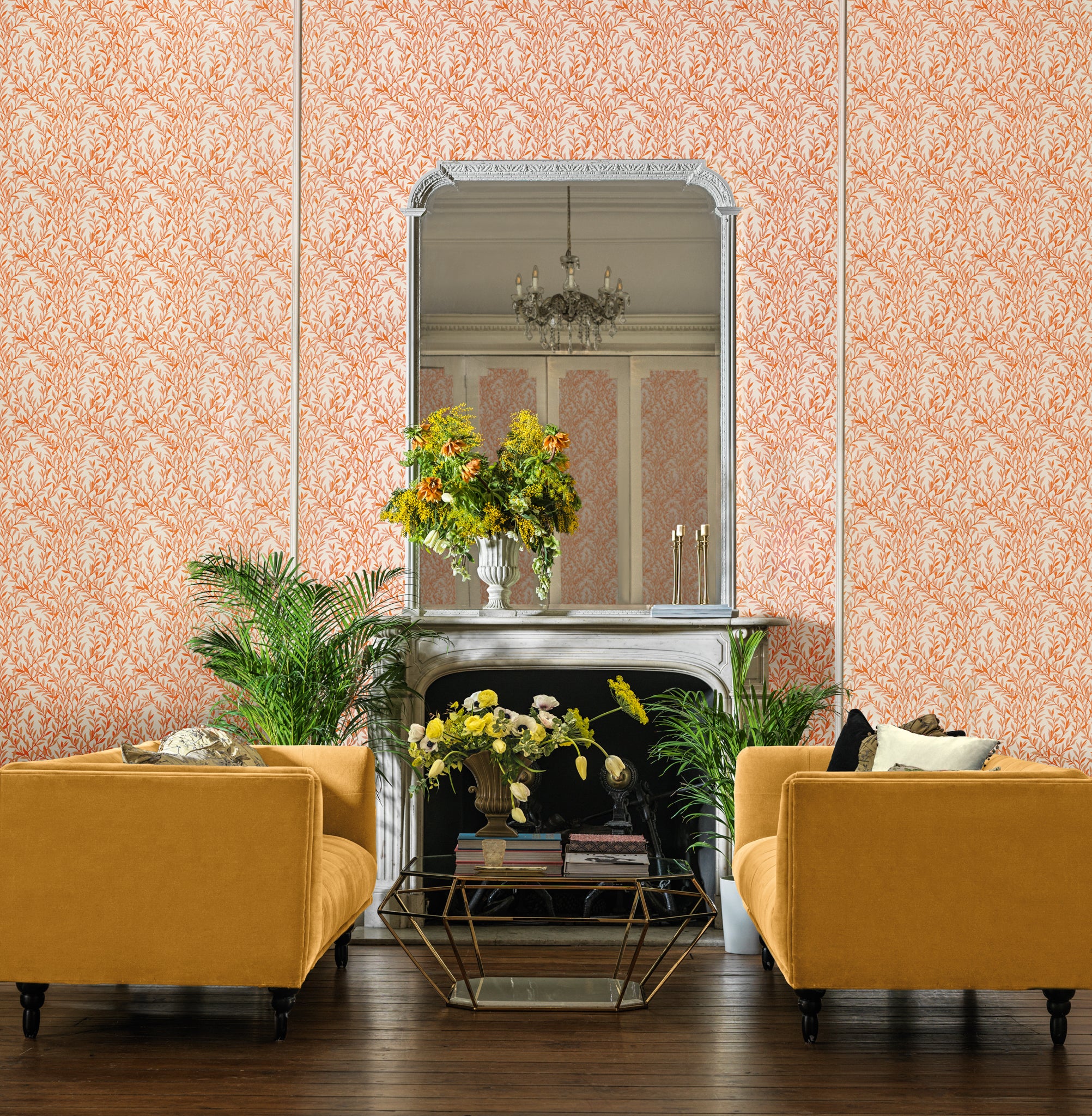 Tapeta Cole & Son 127/7034 Classics Collection Vol. I Willow Branch Tangerine on Cream reinterpretuje motyw wierzby jako delikatny, organiczny damaszek o pulsującym rytmie i naturalnej elegancji. Smukłe, łagodnie opadające gałęzie tworzą spójną siatkę graficzną, w której każdy liść zdaje się częścią płynnego ruchu, inspirowanego obserwacją żywej rośliny. Wzór czerpie z archiwalnych sitodruków Cole & Son, zachowując subtelne niuanse techniki analogowej, które nadają mu wizualną głębię i autentyczną fakturę. Tapeta Cole & Son Classics Collection Vol. I Willow Branch 127/7034 Tangerine on Cream nie tylko dekoruje, lecz wprowadza do wnętrza nastrój spokoju i wyrafinowanego porządku – ornament staje się tu elementem kompozycyjnym, scalającym przestrzeń i nadającym jej zmysłowość.