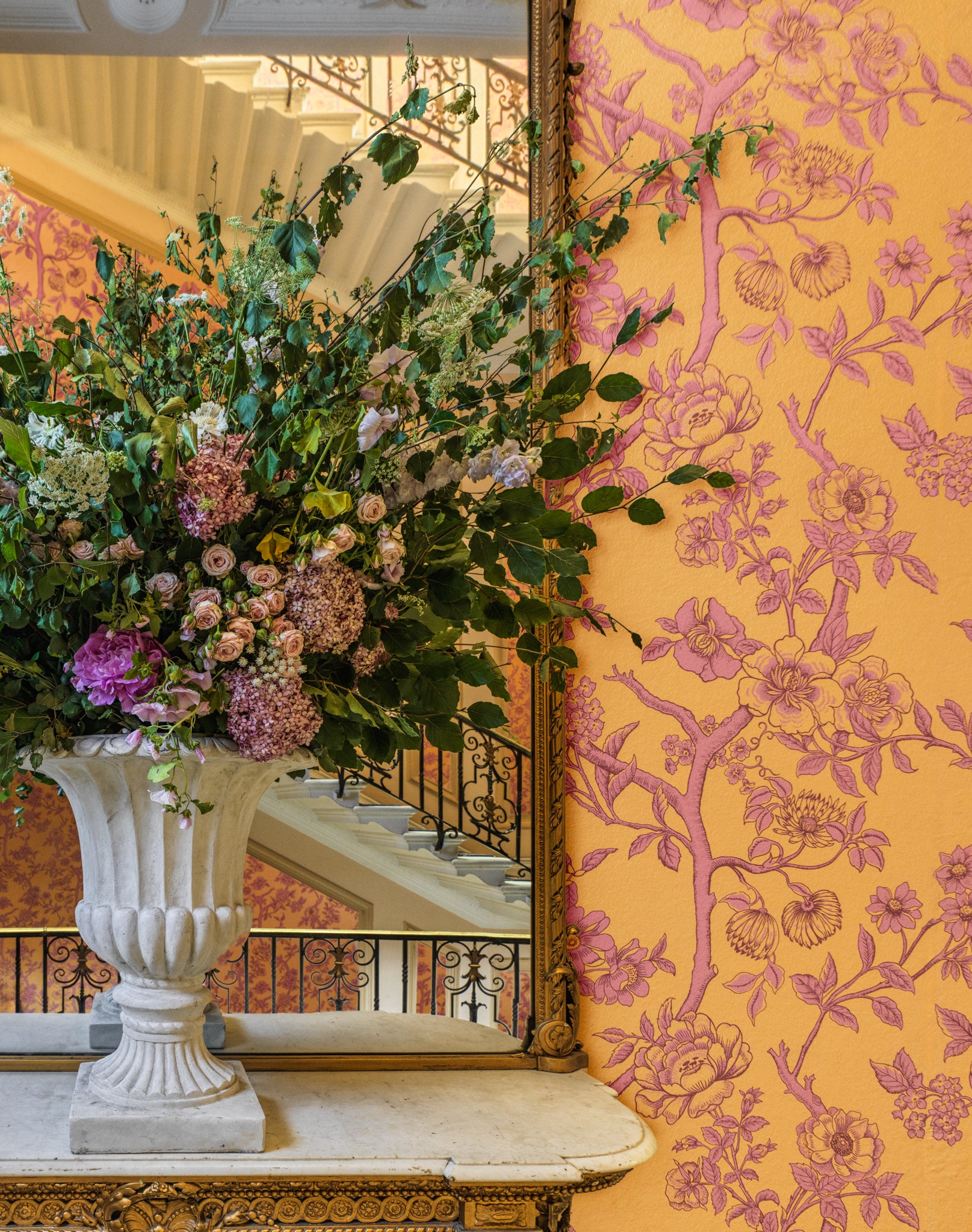 Tapeta Cole & Son 128/2011 Classics Collection Vol. II Paradise Tree Tangerine and Hibiscus to pełna detali kompozycja inspirowana klasycznym stylem botanicznym, w której wijące się konary drzewa rozpościerają bogaty baldachim liści i kwiatów. Różnorodność form - od cięższych, pełnych kwiatów przypominających piwonie i róże po subtelniejsze o prostszej budowie - nadaje całości dynamikę i efekt egzotycznego ogrodu. Tapeta Cole & Son Classics Collection Vol. II Paradise Tree 128/2011 Tangerine and Hibiscus łączy ilustracyjną precyzję dawnych rycin z ornamentalnym charakterem dekoracji ściennych, co sprawia, że wzór idealnie podkreśla prestiż przestrzeni reprezentacyjnych, takich jak salony czy biblioteki. To projekt, który wprowadza do wnętrza atmosferę elegancji i bujnej natury, a zarazem harmonijnie wpisuje się w aktualne trendy aranżacyjne czerpiące inspirację z roślinnych motywów.