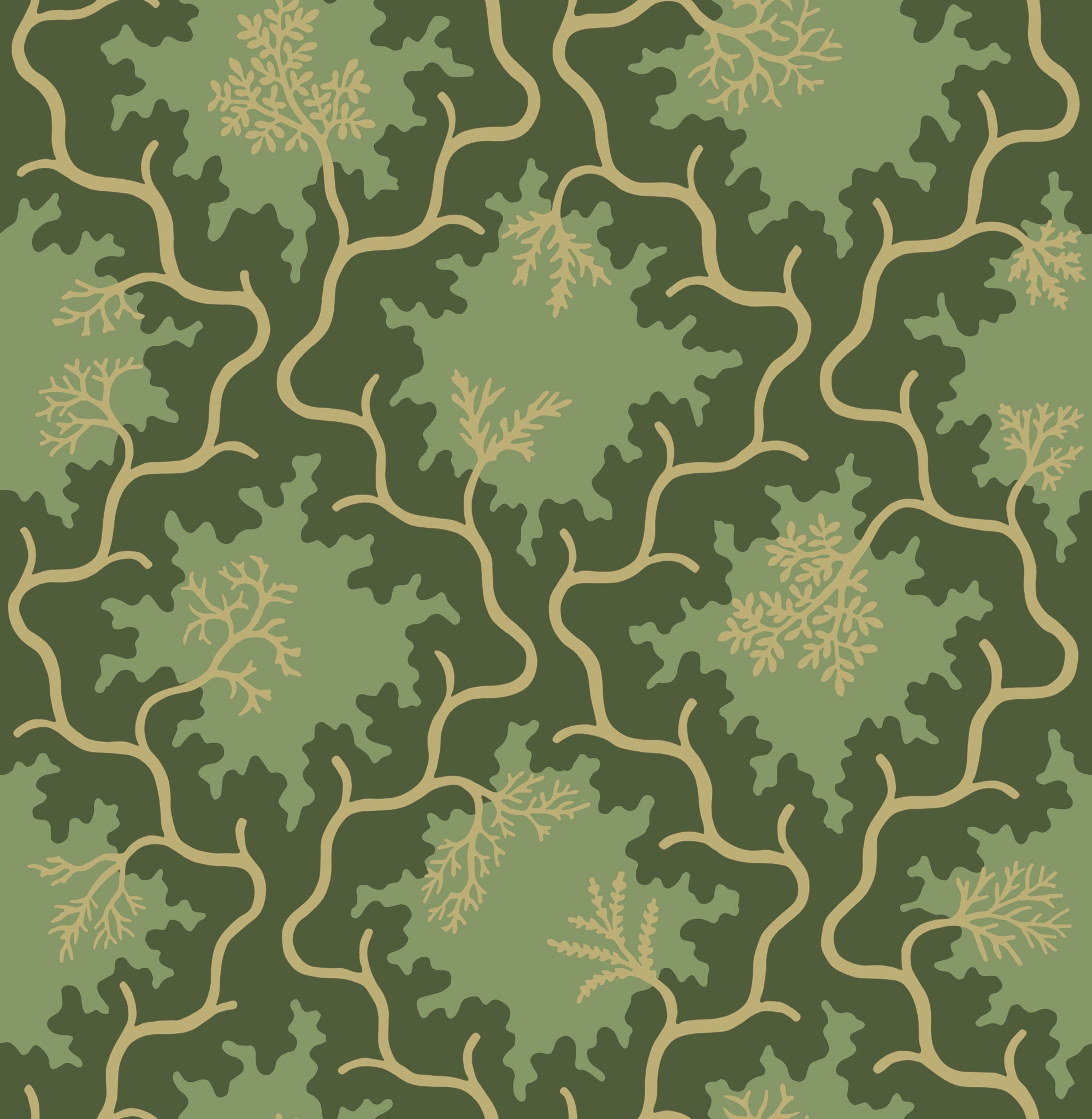 Tapeta Cole & Son 128/4021 Classics Collection Vol. II Moss Trellis Evergreen and Antique Gold prezentuje wzór o korzeniach sięgających lat 30. XX wieku, kiedy powstał oryginalny projekt inspirowany naturalnymi strukturami pnączy i mchów. Dynamiczne, faliste linie układają się w powtarzalny ornament przypominający sieć organicznych gałęzi lub trejaż, między którymi pojawiają się kształty przywołujące liście i koralowe rozgałęzienia. Tapeta Cole & Son Classics Collection Vol. II Moss Trellis 128/4021 Evergreen and Antique Gold wprowadza do wnętrza efekt artystycznej abstrakcji, łącząc w sobie harmonię rytmu z ekspresją natury. Jej monumentalny, wielkoformatowy charakter sprawia, że doskonale sprawdza się jako dekoracyjne tło w eleganckich salonach, reprezentacyjnych jadalniach czy stylowych przestrzeniach komercyjnych.