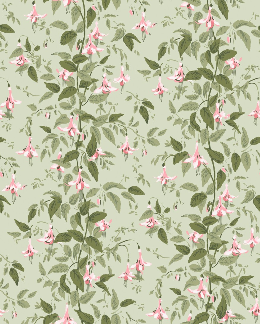Tapeta Cole & Son 128/6032 Classics Collection Vol. II Fuchsia Powder Pink and Olive on Soft Spring Green ukazuje misterny roślinny wzór, w którym delikatne kwiaty fuksji w odcieniu pudrowego różu łączą się z liśćmi w tonacji oliwkowej zieleni. Kompozycję tworzą gęsto przeplatające się gałązki, pełne zwisających, dzwonkowatych kwiatów, które przywołują obraz lekkiego deszczu unoszącego się w powietrzu. Tapeta Cole & Son Classics Collection Vol. II Fuchsia 128/6032 Powder Pink and Olive on Soft Spring Green odzwierciedla naturalny rytm roślinności, emanując spokojem i świeżością wiosennego ogrodu. Subtelna kolorystyka nadaje wnętrzom miękkości, a jednocześnie wnosi element wyrafinowanej elegancji. Ten klasyczny projekt świetnie harmonizuje zarówno z aranżacjami tradycyjnymi, jak i współczesnymi, wprowadzając do przestrzeni aurę delikatności, lekkości oraz organicznej harmonii inspirowanej naturą.