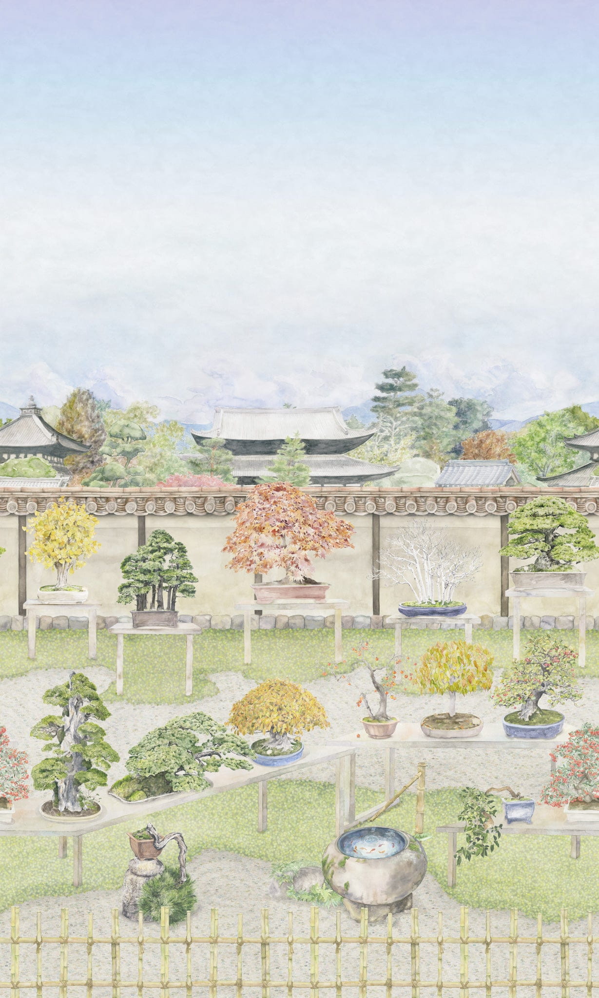 Cole&Son 126/1001 Shinrin Yoku Bonsai Garden Vivid - mural krajobraz z drzewkami bonsai