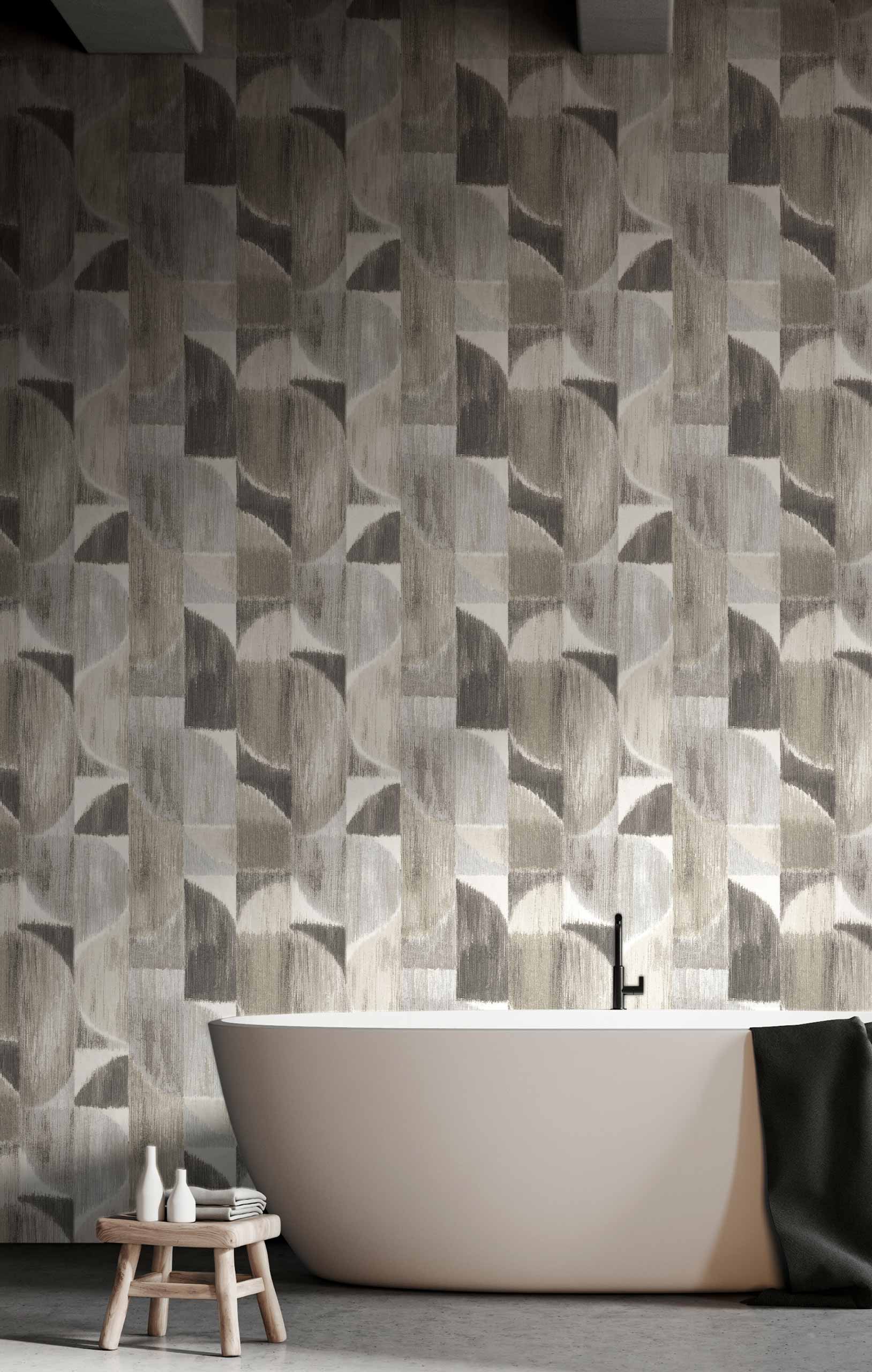 Tapeta Cristiana Masi Sintesi Kiklos 27525 ukazuje geometryczny wzór złożony z półkoli i prostokątów, który łączy artystyczną ekspresję z elegancją włoskiego designu. Kompozycja zachowuje idealny balans między ruchem a porządkiem, co tworzy harmonijny rytm sprzyjający wizualnej równowadze. Faktura o delikatnym, malarskim wykończeniu podkreśla głębię wzoru i nadaje ścianie miękkość. Wzór przywodzi na myśl nowoczesne reinterpretacje modernizmu, w których prostota form zyskuje dekoracyjny charakter. Tapeta doskonale współgra z meblami o wyraźnych liniach i elementami z drewna, szkła lub metalu, dlatego idealnie wpisuje się w aranżacje w stylu art déco oraz modern classic. Tapeta Cristiana Masi 27525 Sintesi Kiklos nadaje wnętrzu elegancję, rytm i ponadczasową spójność, które tworzą przestrzeń o artystycznym, wyrafinowanym charakterze.