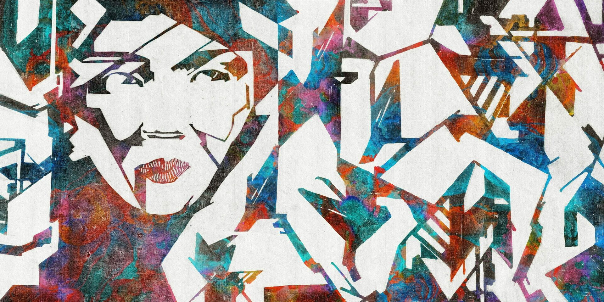 Dekorami Adriana 1 - mural geometryczny z twarzą