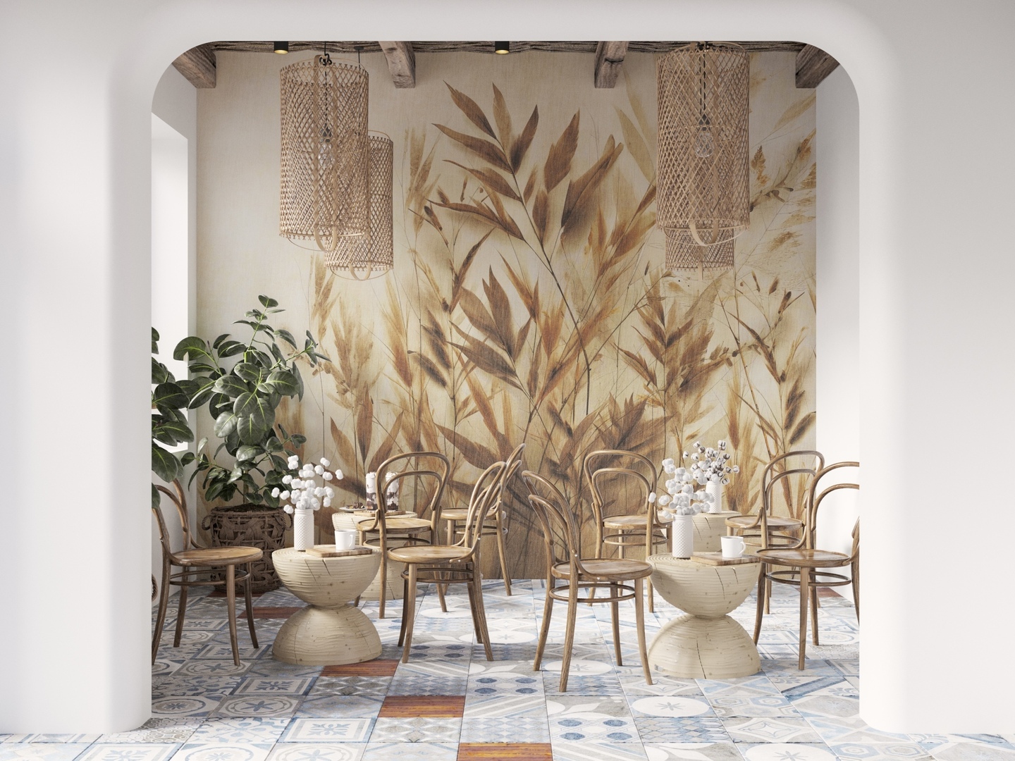 Mural Dekorami Agosto 1 emanuje ciepłem późnego lata i delikatnością naturalnych form, przywołując obraz polnych traw muskanych popołudniowym słońcem. Kompozycja subtelnie łączy miękkie beże, głębokie ochry i zgaszone brązy, tworząc wyrafinowane tło dla wnętrz w duchu boho, japandi czy rustykalnego minimalizmu. Dynamiczne linie źdźbeł, lekko rozmyte krawędzie i malarska faktura wprowadzają efekt głębi, dodając przestrzeni lekkości i organicznego rytmu. Produkt Dekorami Agosto 1 to dekoracja zaprojektowana z myślą o balansie – wpisuje się w estetykę wnętrz, w których natura spotyka się z elegancją. Doskonale odnajduje się zarówno w przestrzeniach komercyjnych, jak kameralne kawiarnie czy galerie, jak i w prywatnych aranżacjach – od nastrojowych sypialni, po jasne strefy dzienne. Szlachetny charakter muralu podkreśli unikalny klimat wnętrza, bez nachalności, z subtelną nutą artystycznego wyrazu.