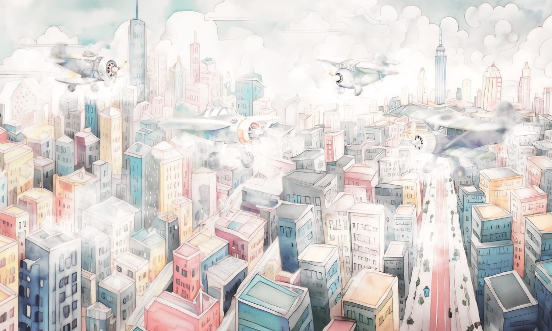 Dekorami Airshow 2 - mural dla dzieci w miejski krajobraz i samoloty