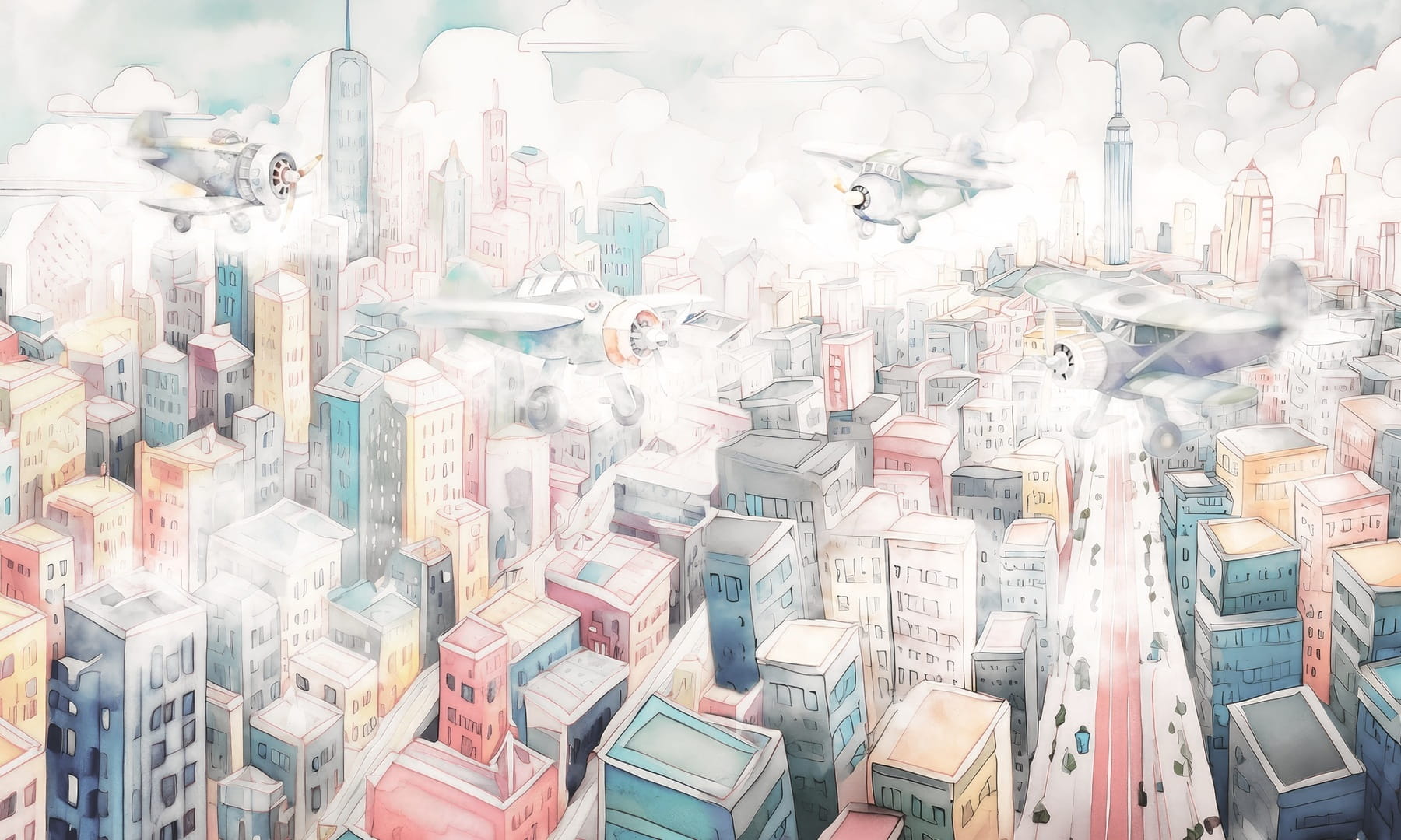 Dekorami Airshow 3 - mural dla dzieci w miejski krajobraz i samoloty