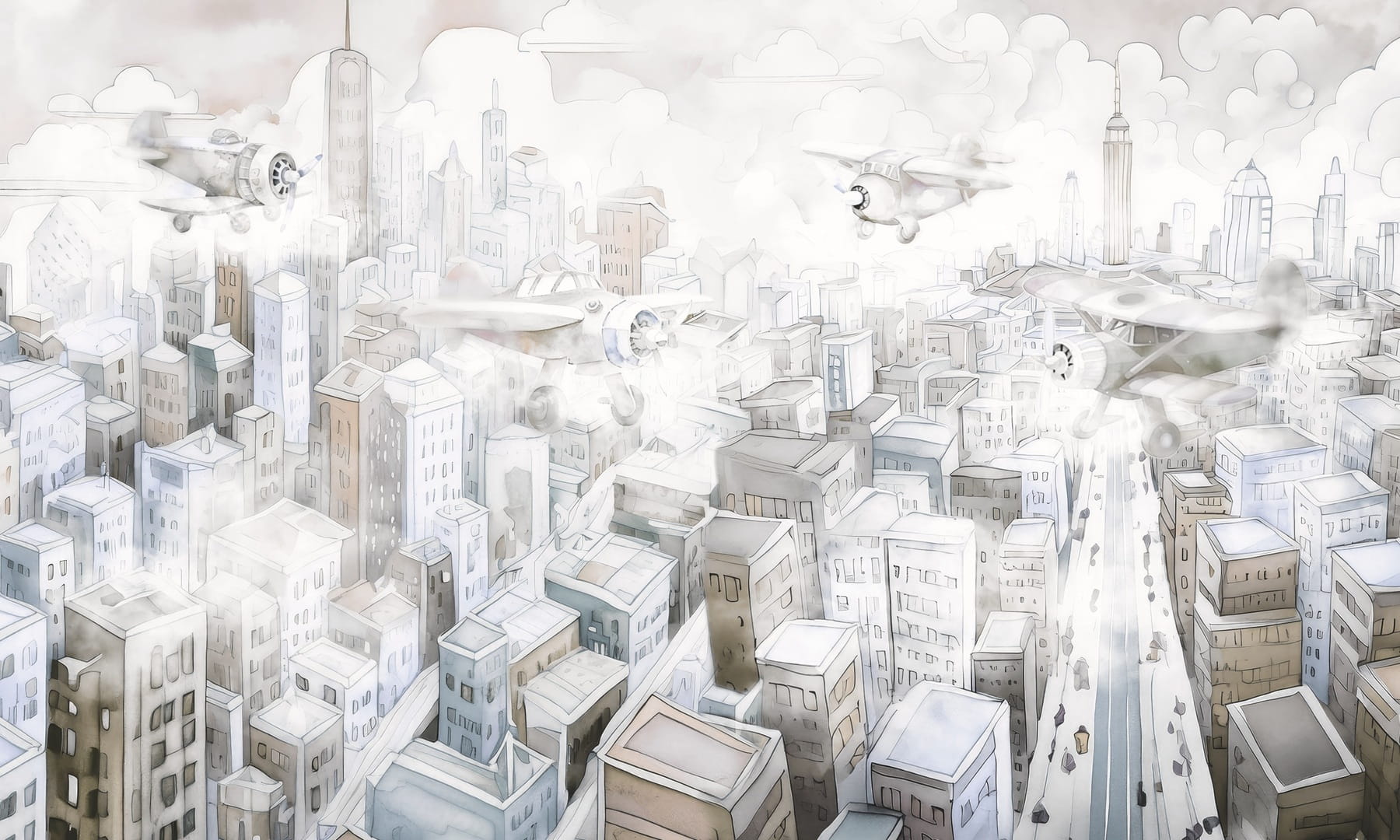 Dekorami Airshow 1 - mural dla dzieci w miejski krajobraz i samoloty