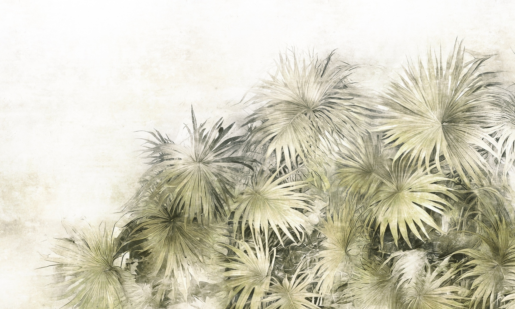 Mural Dekorami Desiree 3 przedstawia bujne wachlarzowe liście w odcieniach oliwki, zgniłej zieleni i szarości, zestawione z tłem o subtelnym wykończeniu imitującym betonową strukturę. Kompozycja skoncentrowana w prawej części dekoracji buduje efekt naturalnego zagęszczenia roślinności i pozwala na swobodne operowanie przestrzenią. Kontrast między organiczną formą liści a surowym, neutralnym tłem sprawia, że wzór zachowuje równowagę między ekspresją a funkcjonalnością. Produkt Dekorami Desiree 3 dobrze odnajduje się w aranżacjach o charakterze industrialnym, w stylistyce urban jungle i nowoczesnych wnętrzach opartych na naturalnych materiałach. Mural współgra z betonem, drewnem i metalem. To propozycja dla przestrzeni wymagających wyrazu – bez rezygnacji z elegancji i uporządkowania wizualnego. Wzór o wysokim potencjale aranżacyjnym, nadający charakteru, nie dominując nad całością projektu.
