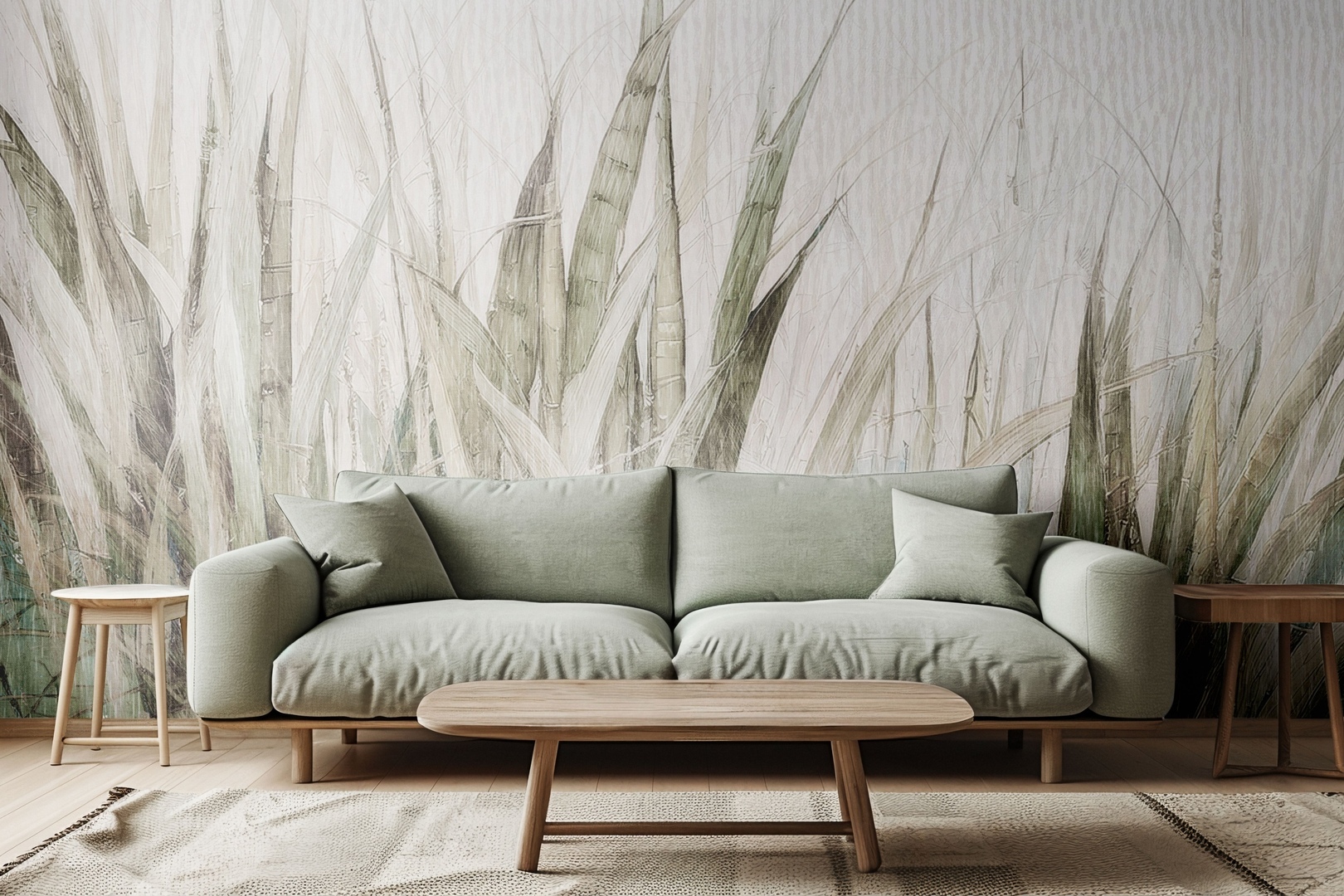 Mural Dekorami Future Perfect 4 emanuje spokojem płynącym z natury, wykorzystując motyw dzikich traw ujętych w malarskim, niemal szkicowym stylu. Poszarzała zieleń, przełamana wyblakłym beżem i kremową bielą tworzy estetykę, która balansuje między botaniczną świeżością a artystyczną surowością. Kompozycja pełna pionowych, nieregularnych linii przywodzi na myśl krajobraz naturalnej łąki – dzikiej, nieujarzmionej, ale zarazem wyrafinowanej. Mural Dekorami Future Perfect 4 idealnie wpisuje się w przestrzenie inspirowane wabi-sabi, eko designem oraz subtelnym minimalizmem. Charakterystyczna struktura roślinnych form dodaje głębi, optycznie powiększając wnętrze i wprowadzając organiczny rytm. Stonowana kolorystyka ułatwia zestawienie z różnymi fakturami – od gładkich, jasnych tynków, po rustykalne drewno czy beton. To propozycja dla estetycznych indywidualistów ceniących naturalność ubraną w nowoczesną formę.